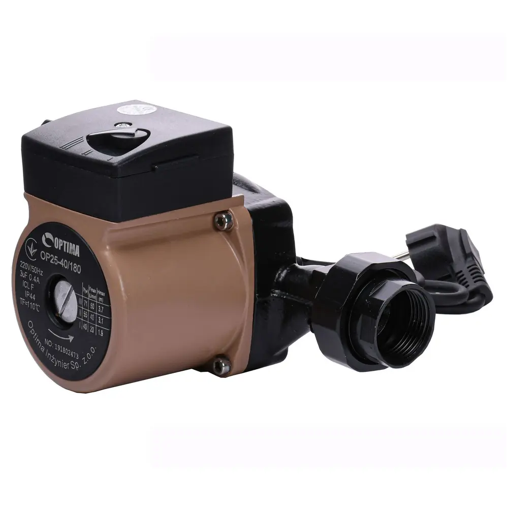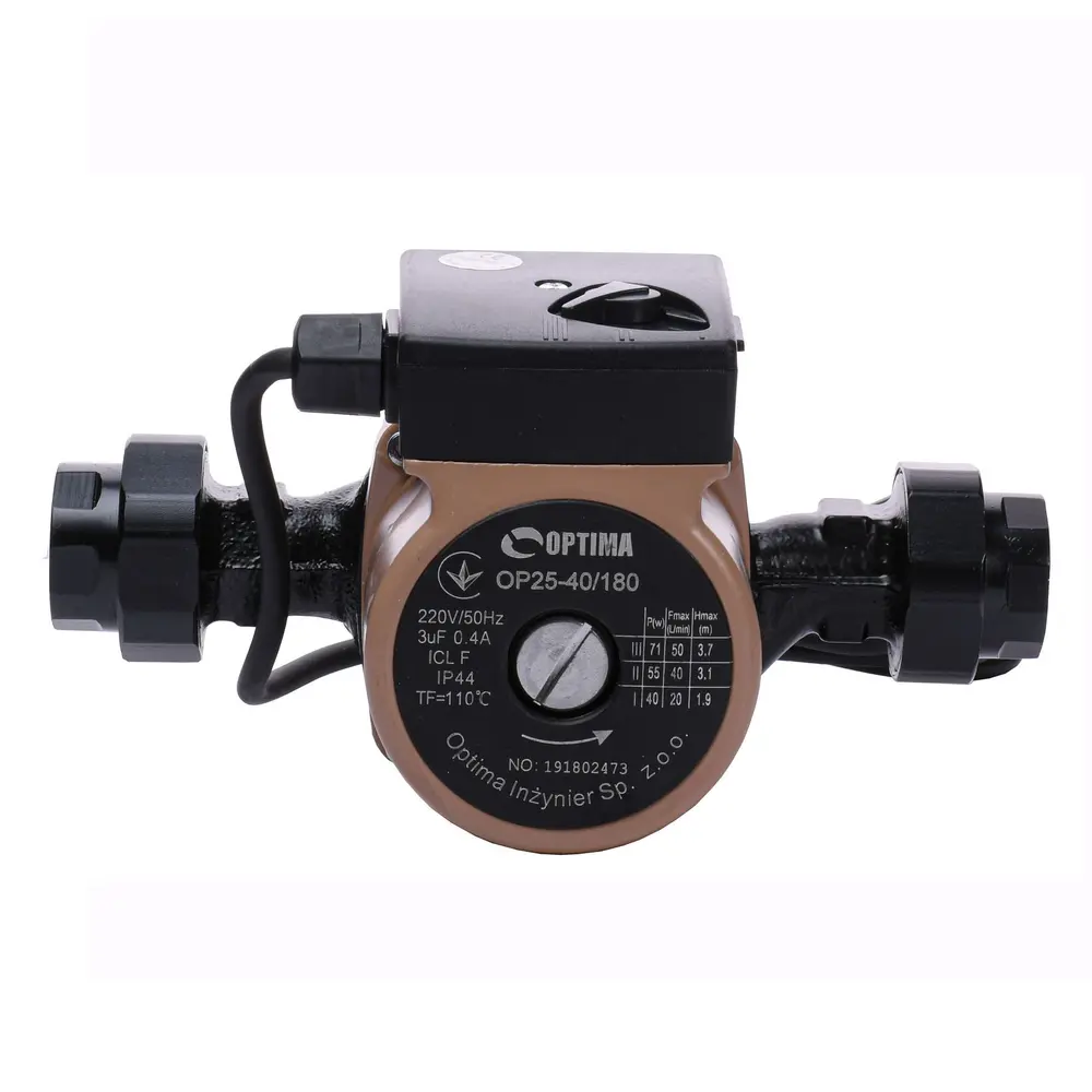 Циркуляційний насос Optima OP25-40 - це циркуляційний насос однофазний з «мокрим ротором» і регульованою швидкістю призначений для застосування в опалювальних системах закритого типу з примусовою циркуляцією або в системах з відкритим розширювальним баком.