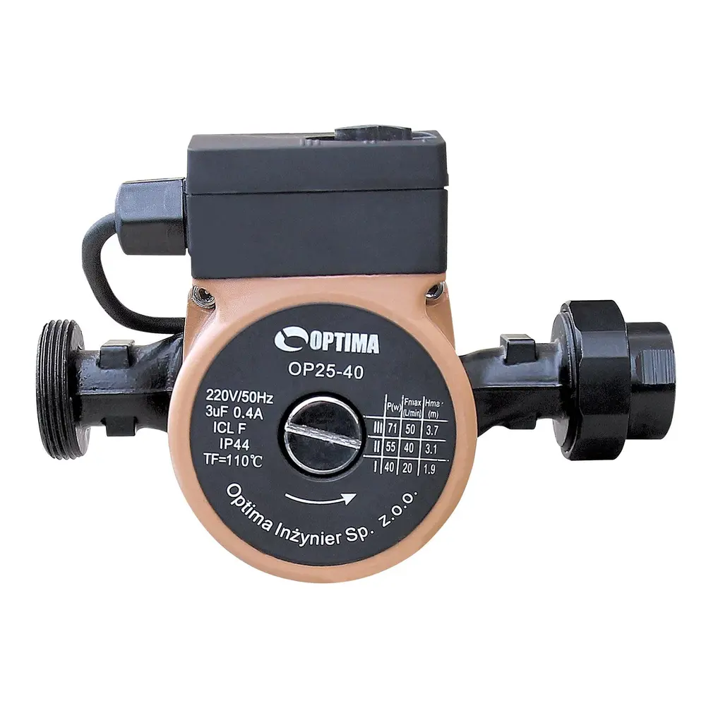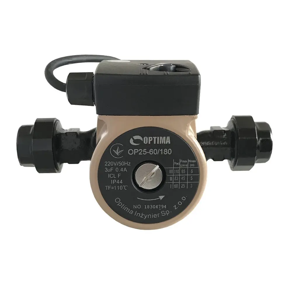 Циркуляційний насос Optima OP25-60 - це циркуляційний насос однофазний з «мокрим ротором» і регульованою швидкістю призначений для застосування в опалювальних системах закритого типу з примусовою циркуляцією або в системах з відкритим розширювальним баком.