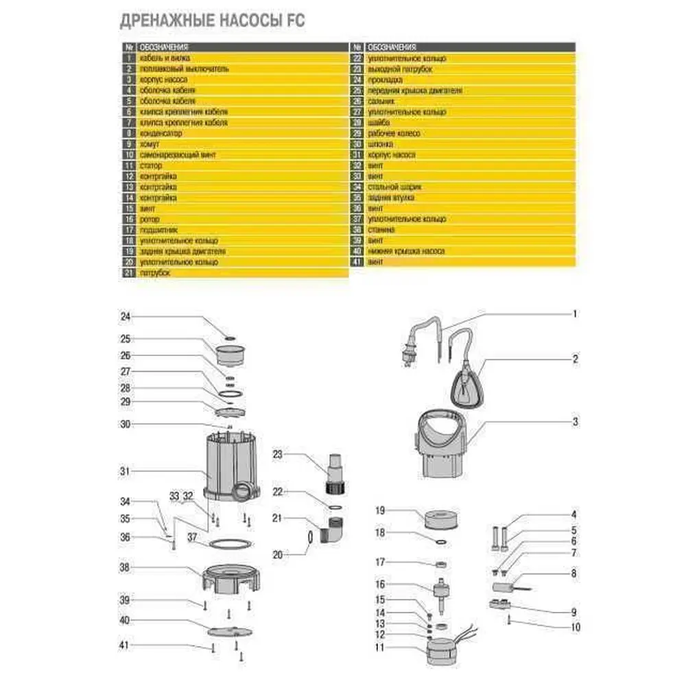 Насос складається з трьох основних вузлів - електродвигуна, відцентрового насоса і поплавкового вимикача. У нижній частині насоса розташовані усмоктувальні отвори. Корпус насоса і робоче колесо виконані з матеріалу, що має високі механічні властивості. Після закріплення на насос напірного шланга, занурення його в воду і підключення до мережі електроживлення насос вмикається і вимикається автоматично за допомогою поплавкового вимикача.