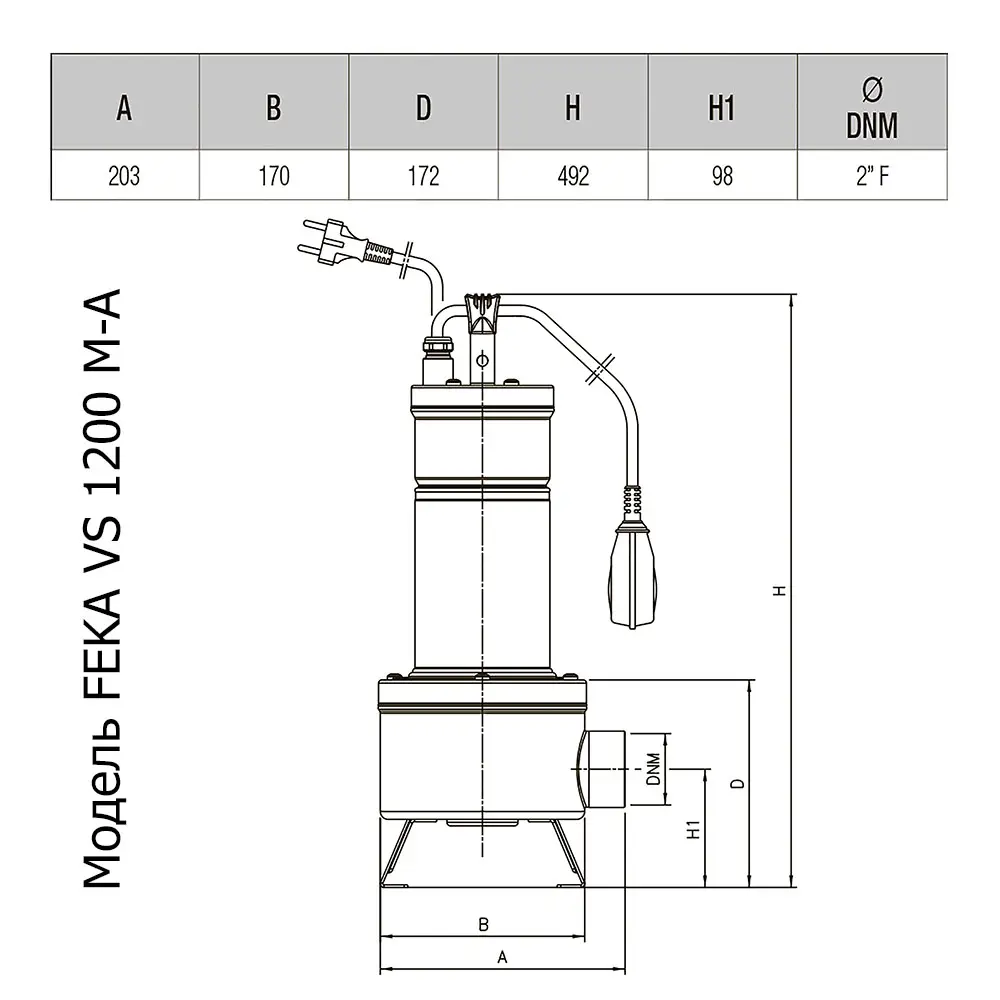 Насос фекальный DAB FEKA VS 1200 M-A погружной центробежный насос с вихревым рабочим колесом из коррозионностойкой стали. Устройство предназначено для перекачки сточных, канализационных и дренажных вод с содержанием твердых частиц до 50 мм в диаметре. Рабочая жидкость охлаждает сухой однофазный асинхронный электродвигатель, установленный в насосе. Установка может быть фиксированным или свободным, однако обязательно в вертикальном положении. Десять метров, такая максимальная глубина погружения устройства.