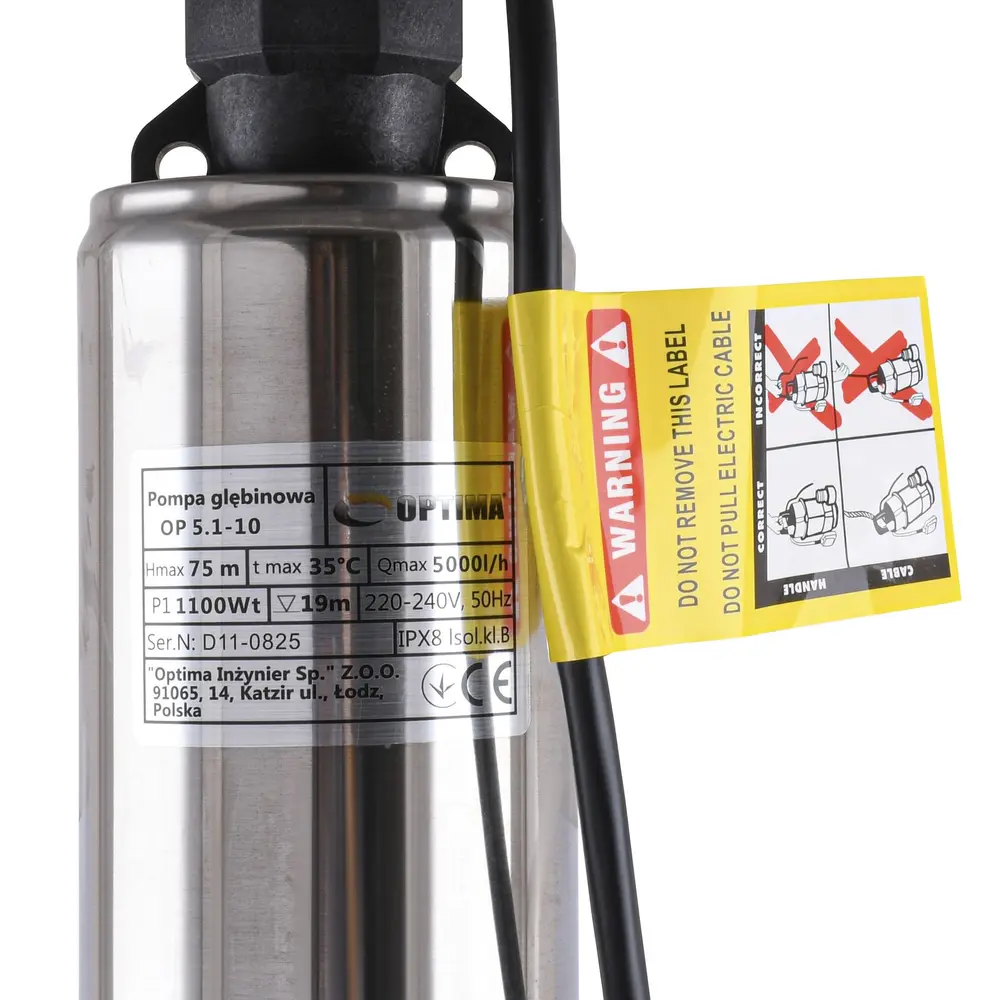 Насос свердловинний з нижнім парканом води (колодезний) OPTIMA OP 5,1 - 10 1,0 кВт, десять робочих коліс