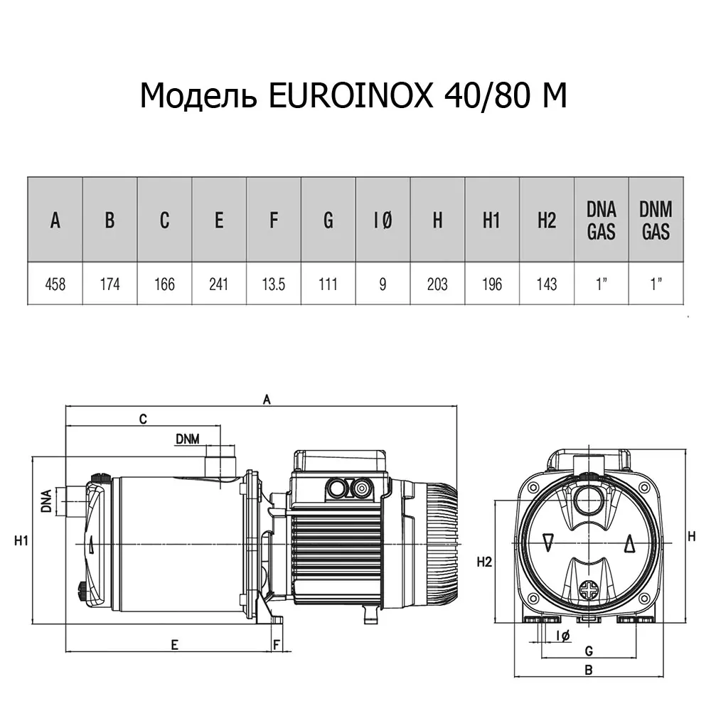 Насос самовсмоктуючий багатоступінчастий DAB EUROINOX 40/80M відцентровий демонструє добру всмоктувальну здатність навіть при наявності бульбашок повітря. Рівнем шуму при роботі пристрою низький. Сфера застосування — водопостачання у побуті й підвищення тиску, системи поливу в сільському господарстві. Корпус гідравлічної частини зроблений з неіржавної сталі. Встановлення: стаціонарне/переносне, в горизонтальному положенні. Температура навколишнього середовища під час експлуатації — max 40 °C.