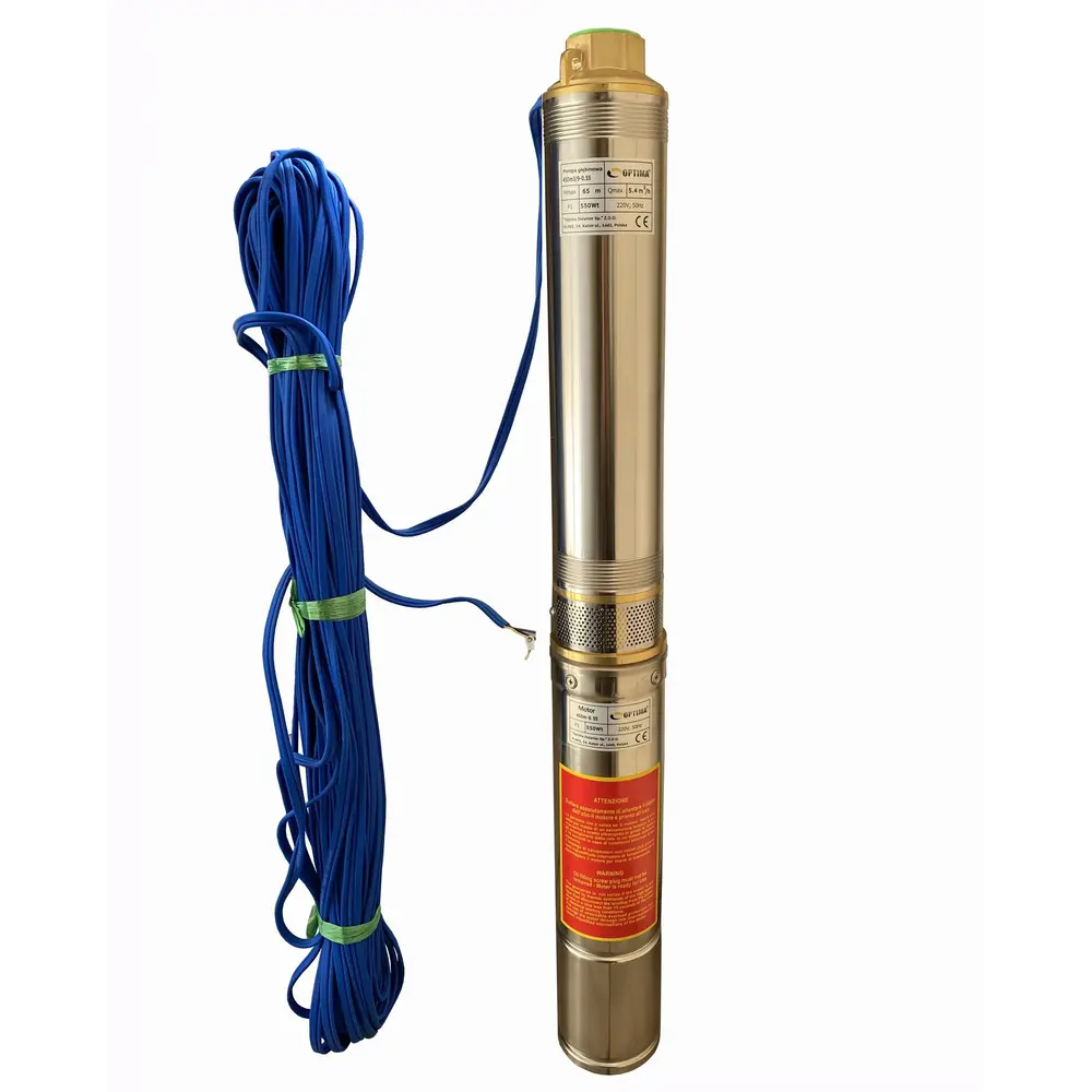 Насос OPTIMA 4SDm3 / 9 0.55 кВт 65м оснащений асинхронним однофазними двигуном з коротко замкнутим ротором і «плаваючим» робочим колесом, для реалізації підвищеної стійкості до піску. Насос комплектується вбудованим в пульт теплової захистом, а також конденсаторним блоком. Двигун заповнений спеціальним мінеральним маслом для ефективного охолодження (тепловіддачі в навколишнє середовище), а також для змащення й охолодження підшипників і механічного ущільнення.