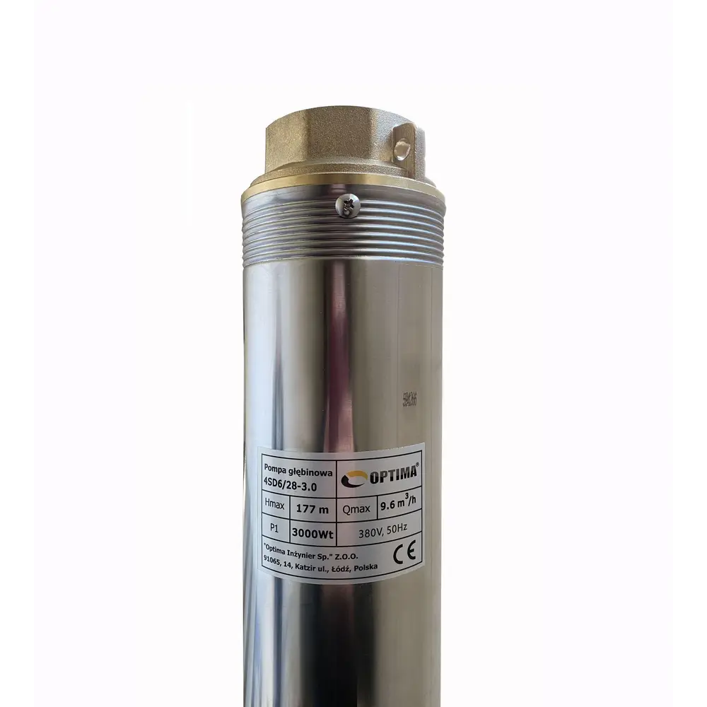 Насос свердловинний з підвищеною стійкістю до піску OPTIMA 4SD 6/28 3,0 кВт 177м 3-х фазний діаметром 4 "призначений для подачі води з свердловин (діаметром від 4" або 100 мм) і відкритих водойм з глибиною більше ніж 9 м, коли використання поверхневого насоса неможливо або недоцільно.