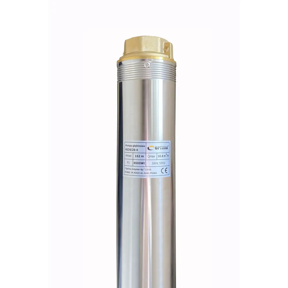 Насос свердловинний з підвищеною стійкістю до піску OPTIMA 4SD8 / 28 4 кВт 162м 3-х фазний діаметром 4 "призначений для подачі води з свердловин (діаметром від 4" або 100 мм) і відкритих водойм з глибиною більше ніж 9 м, коли використання поверхневого насоса неможливо або недоцільно.