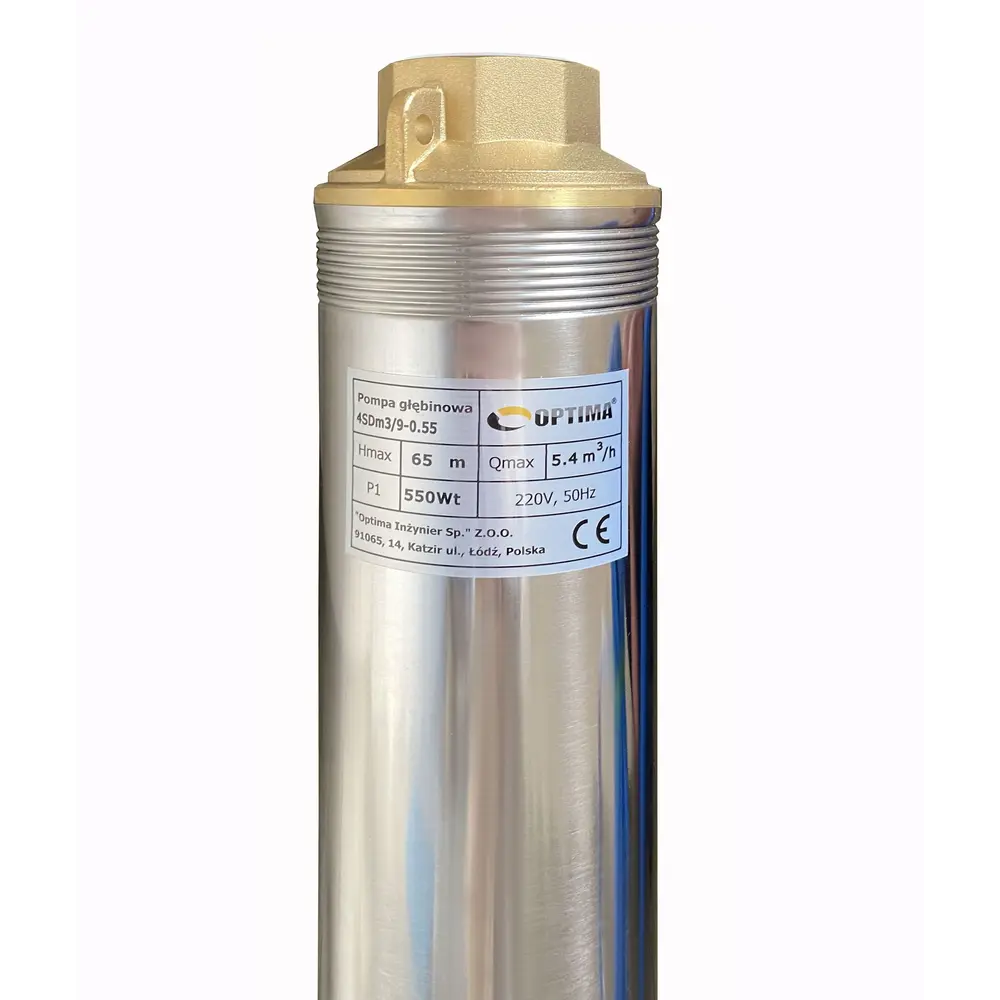 Насос свердловинний з підвищеною стійкістю до піску OPTIMA 4SDm3 / 9 0.55 кВт 65м діаметром 4 "призначений для подачі води з свердловин (діаметром від 4" або 101 мм) і відкритих водойм з глибиною більше ніж 9 м, коли використання поверхневого насоса неможливо або недоцільно.