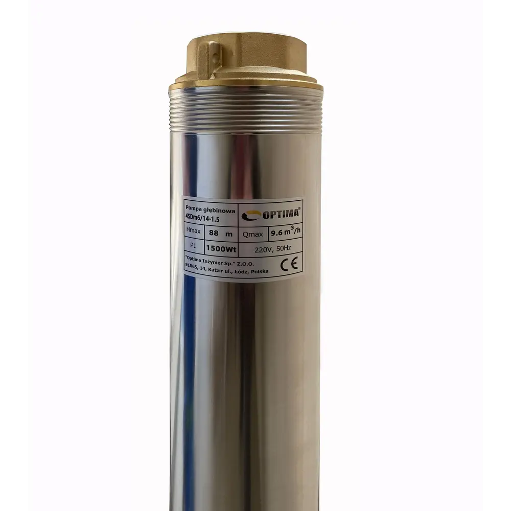 Насос OPTIMA 4SDm6 / 14 1.5 кВт 88м оснащений асинхронним однофазними двигуном з коротко замкнутим ротором і «плаваючим» робочим колесом, для реалізації підвищеної стійкості до піску. Насос комплектується вбудованим в пульт теплової захистом, а також конденсаторним блоком. Двигун заповнений спеціальним мінеральним маслом для ефективного охолодження (тепловіддачі в навколишнє середовище), а також для змащення й охолодження підшипників і механічного ущільнення.