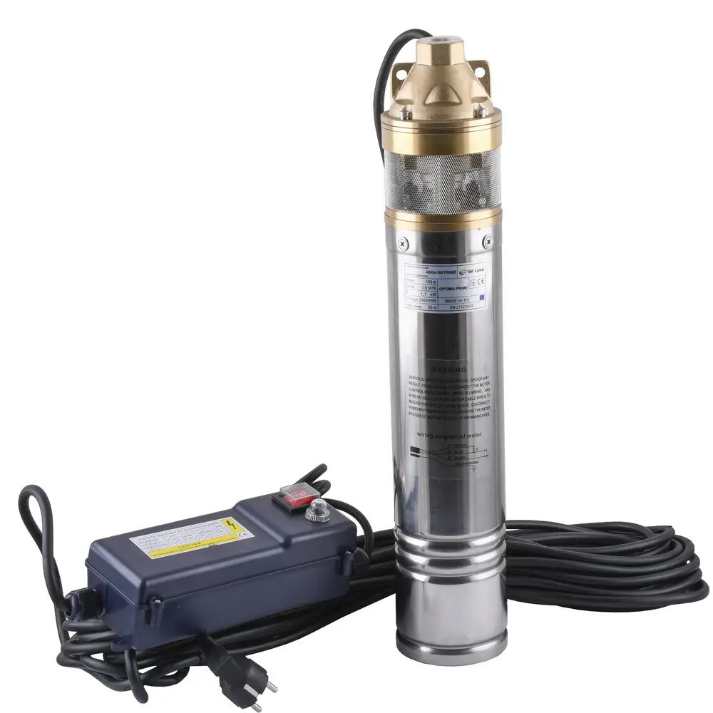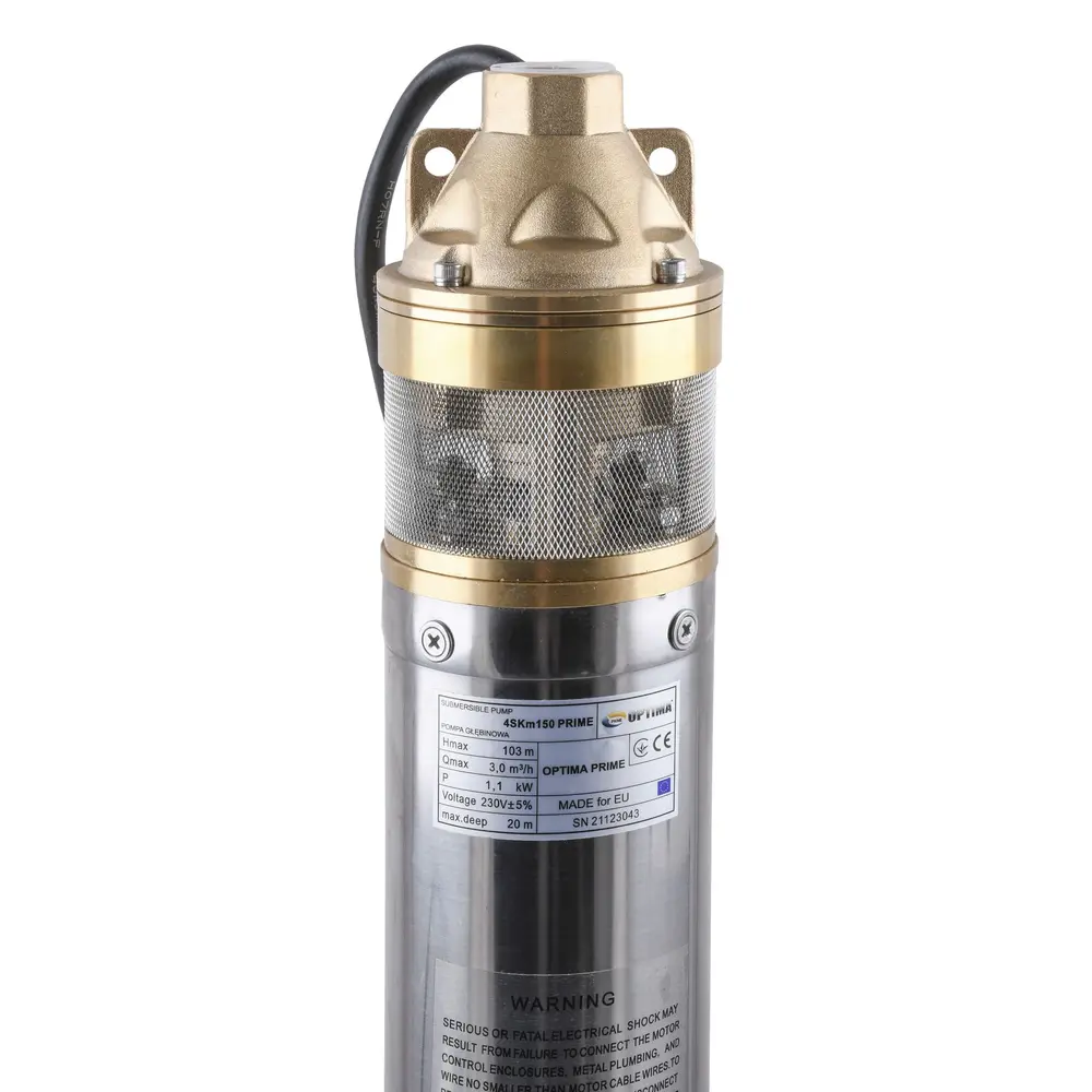 Насос Optima 4SKm150 PRIME 1.1кВт складається з однофазного електродвигуна з масляним охолодженням, призначеного для роботи під водою, і насосної частини з 2-ма робочими колесами вихрового типу. Вихідний фланець, опора наосонної частини насоса та масляна камера виконані з латуні.