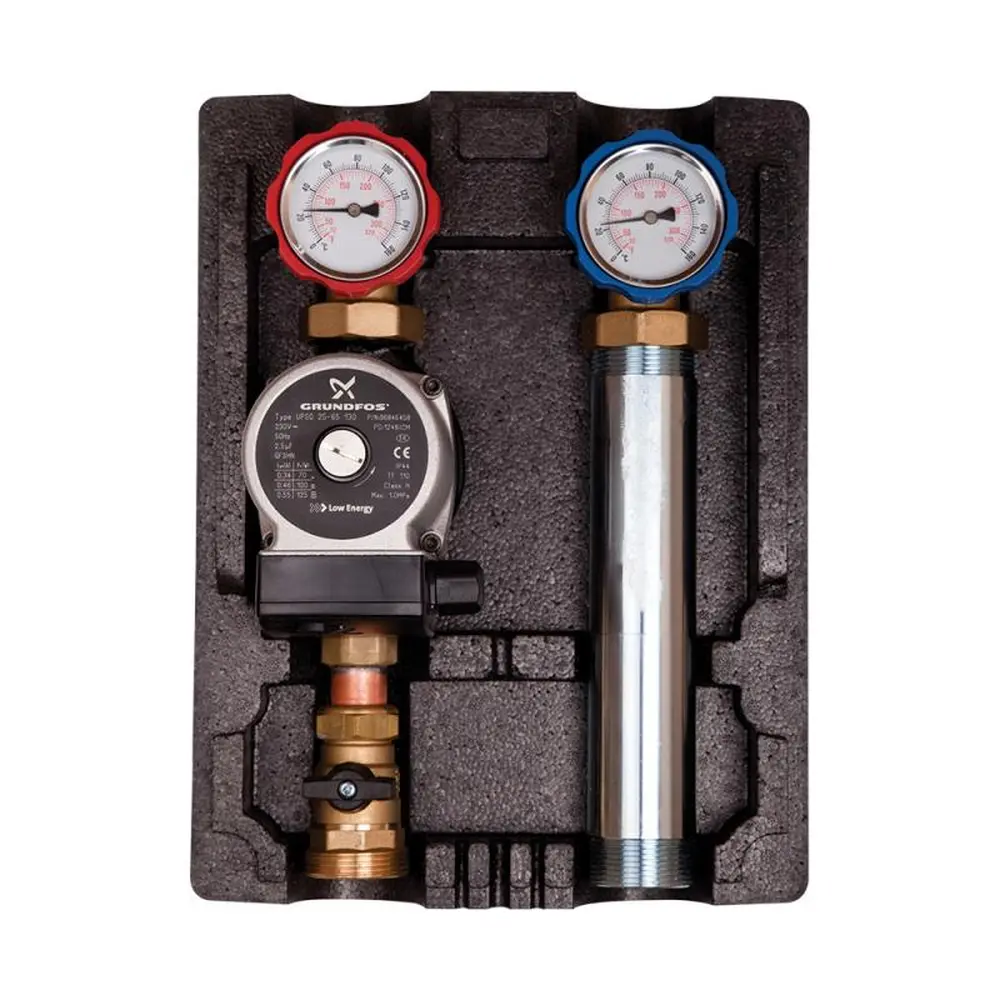Насосні групи ICMA Арт. R003 (без насоса) служать для регулювання температури і подачі теплоносія в багатоповерховому чи багатоквартирному будинку. Зазвичай встановлюються в котельні після гідрострілки. Група R003 може встановлюватися на спеціальному розподільному колекторі «прямої і зворотної лінії» арт. 785. Групи поставляються з ізоляційним кожухом.