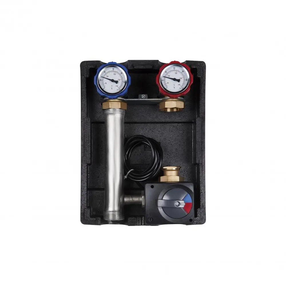Насосні групи ICMA Арт. R001 служать для регулювання температури і подачі теплоносія в багатоповерховому чи багатоквартирному будинку. Зазвичай встановлюються в котельні після гідрострілки. Насосні групи поставляються з ізоляційним кожухом.