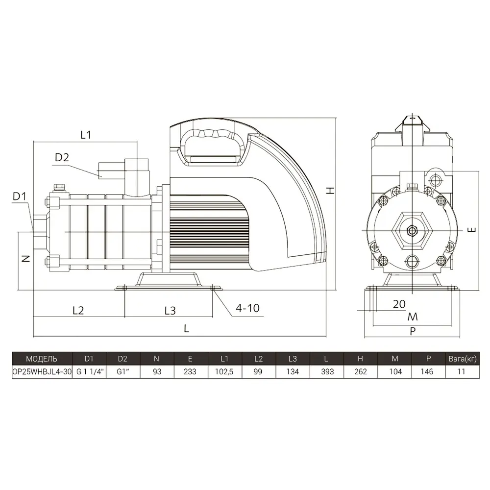 Насосна станція Optima OP25WHBJL4-30 з інтелектуальним частотним перетворювачем на базі багатоступінчастого насоса + бак 5 л в комплекті