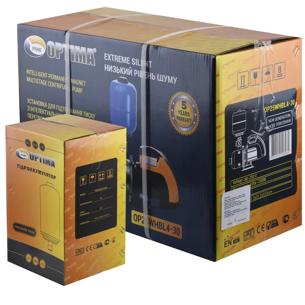 Насосна станція Optima PRIME OP25WHBL4-30 з інтелектуальним частотним перетворювачем на базі багатоступінчастого насоса + бак 5 л в комплекті