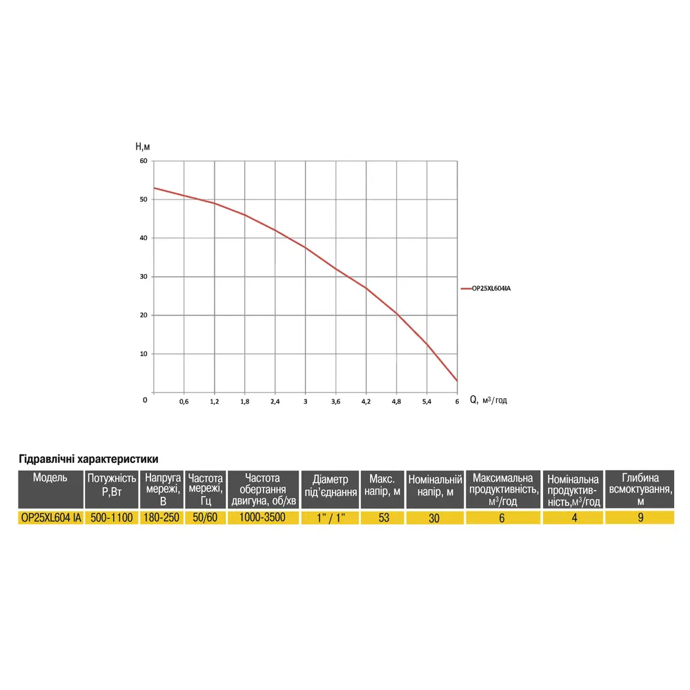 Максимальний напір - 53 м