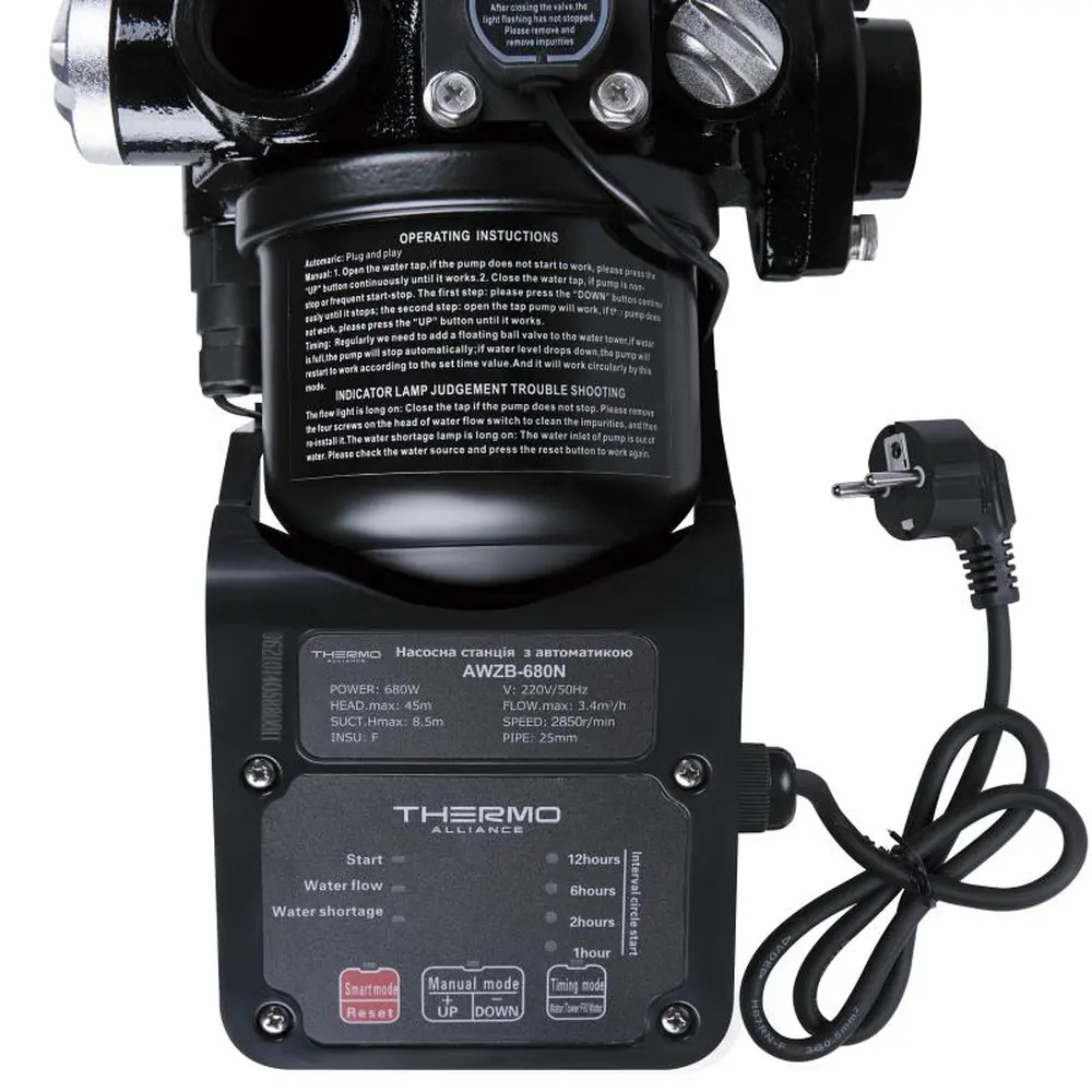 Насосна станція с автоматикою Thermo Alliance AWZB-680N 0,68 кВт вирішить завдання автоматичної подачі води з колодязів, свердловин, відкритих водойм, накопичувальних резервуарів. Основна сфера використання — системи автоматичного водопостачання, поливу/зрошення садів, присадибних ділянок. Станція може перекачувати рідини, в яких є повітря: зворотний клапан на вхідному патрубку дозволяє витягувати і виштовхувати бульбашки повітря (камера насоса при цьому має бути заповнена водою).