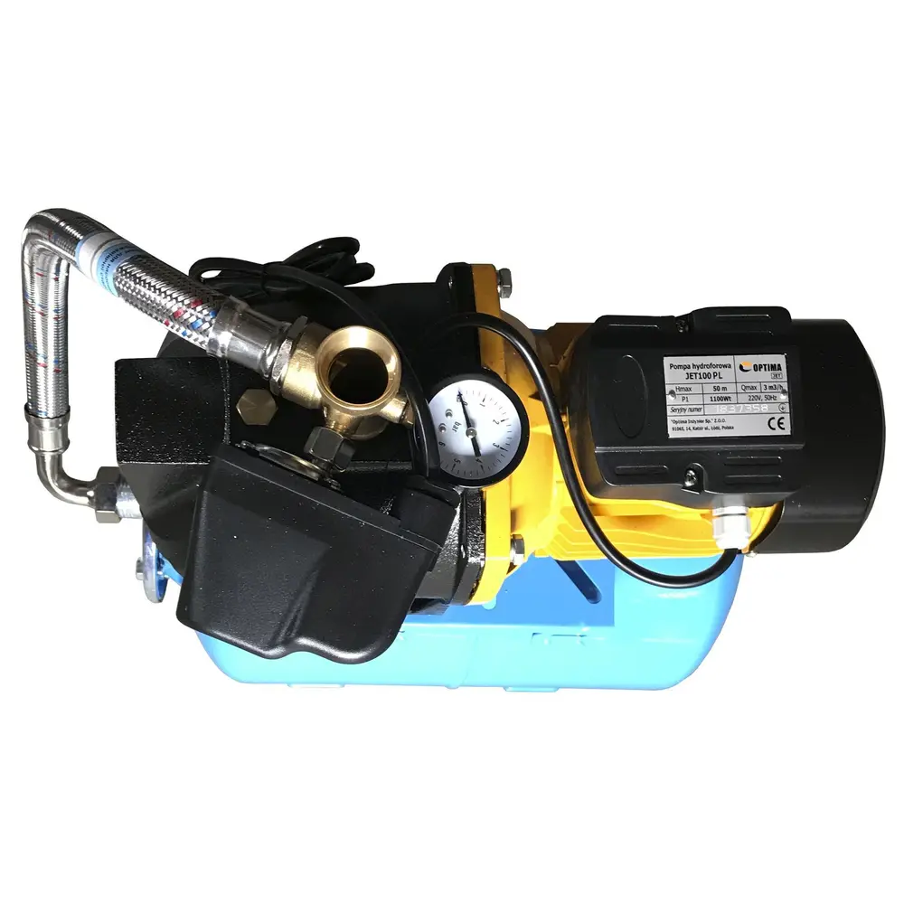 Optima JET100-PL 1,1 кВт чавун - це насос відцентрового типу з одним робочим колесом. Тиск в відцентрових насосах створюється завдяки відцентровій силі, що виникає при впливі лопаток робочого колеса на рідину. Глибина підняття води до 9м, досягається завдяки ежектору (трубці Вентурі), встановленому в корпусі насоса. Рідина, що всмоктується, тільки частково подається в нагнітальний патрубок. Частина води, що залишилася, рециркулює через ежектор, який будучи зєднаний з камерою всмоктування, створює в ній розрідження, необхідне для підняття води. Перед запуском в роботу необхідно залити воду в насосну частину. Завдяки системі Вентурі вирішується проблема перекачування рідин з вмістом повітря.