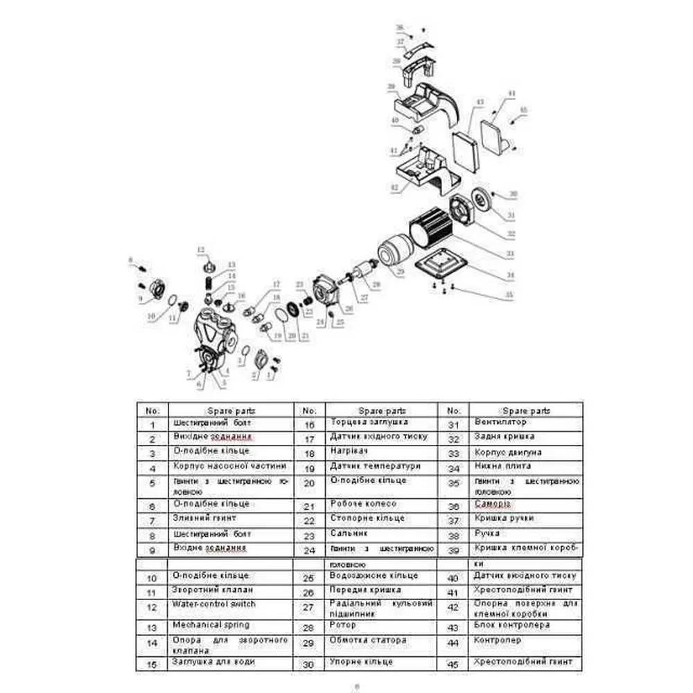• Функція автоматичного запуску кожні 48 год для очищення від відкладень і закисань в камері насосної частини