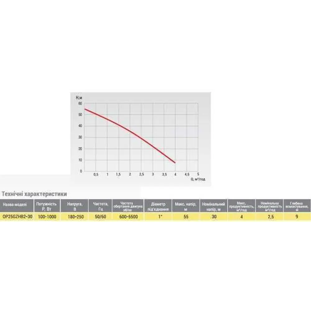 • Максимальний напір: 55 м;