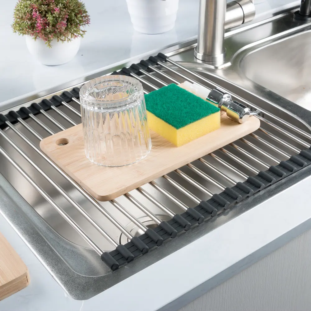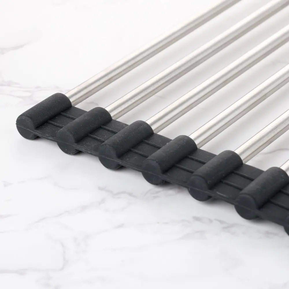 Сушка виготовлена з високоякісної нержавіючої сталі з силіконовими бортиками, яка допоможе вам легко і просто сушити посуд, фрукти, овочі і так само створить безпечну поверхню для зливу після миття.