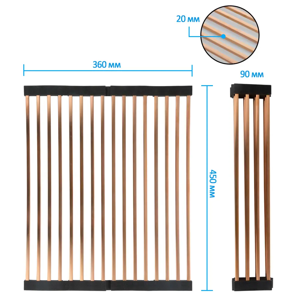 Міцна конструкція металевих прутів дозволить вам ставити на її поверхню важкий посуд, без подальшої деформації. Так само товстий шар силіконового покриття захистить вашу мийку від зайвих подряпин посудом, запобігає корозії та іржі металевих прутів.