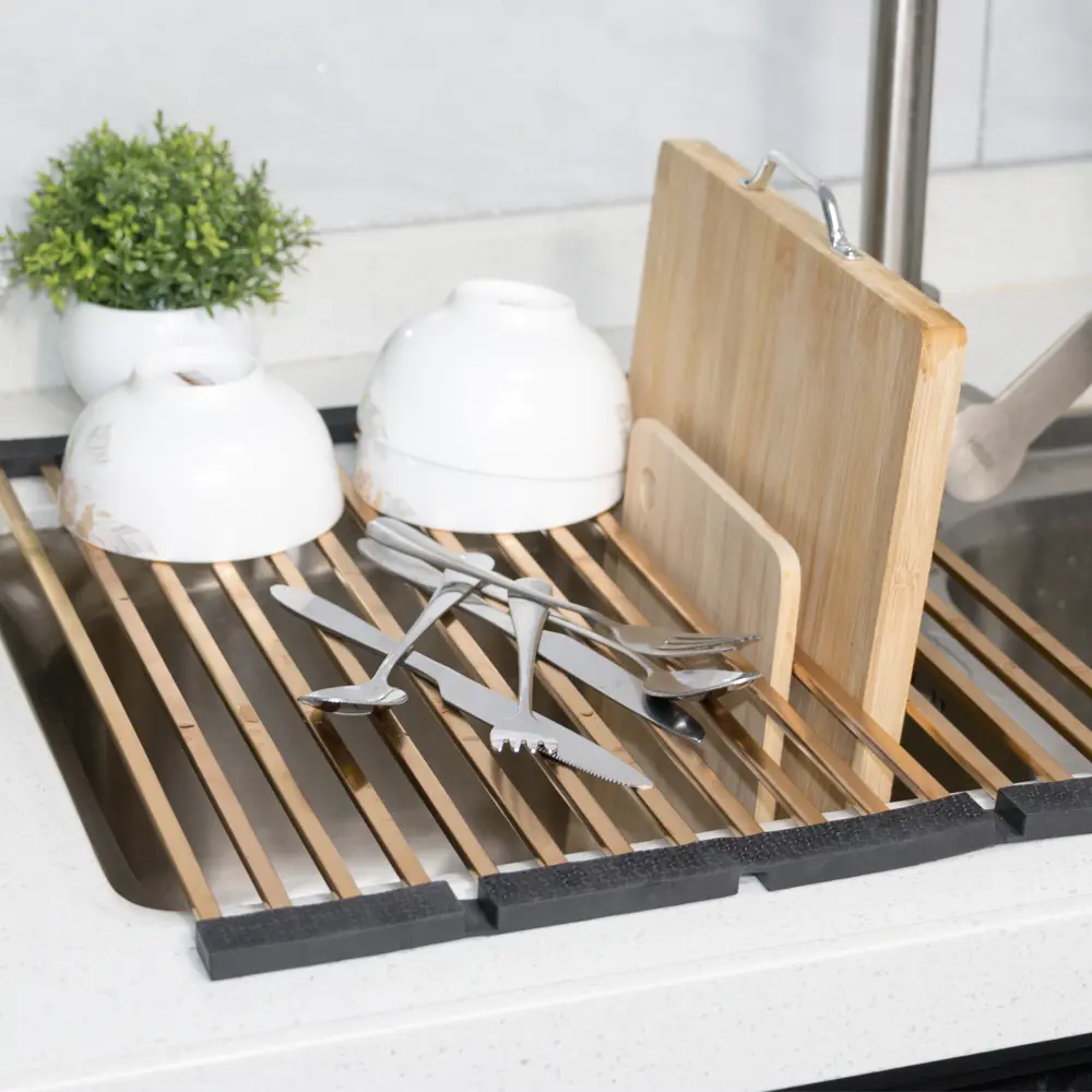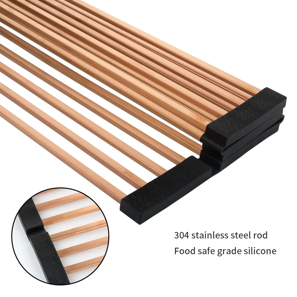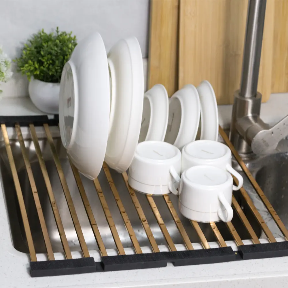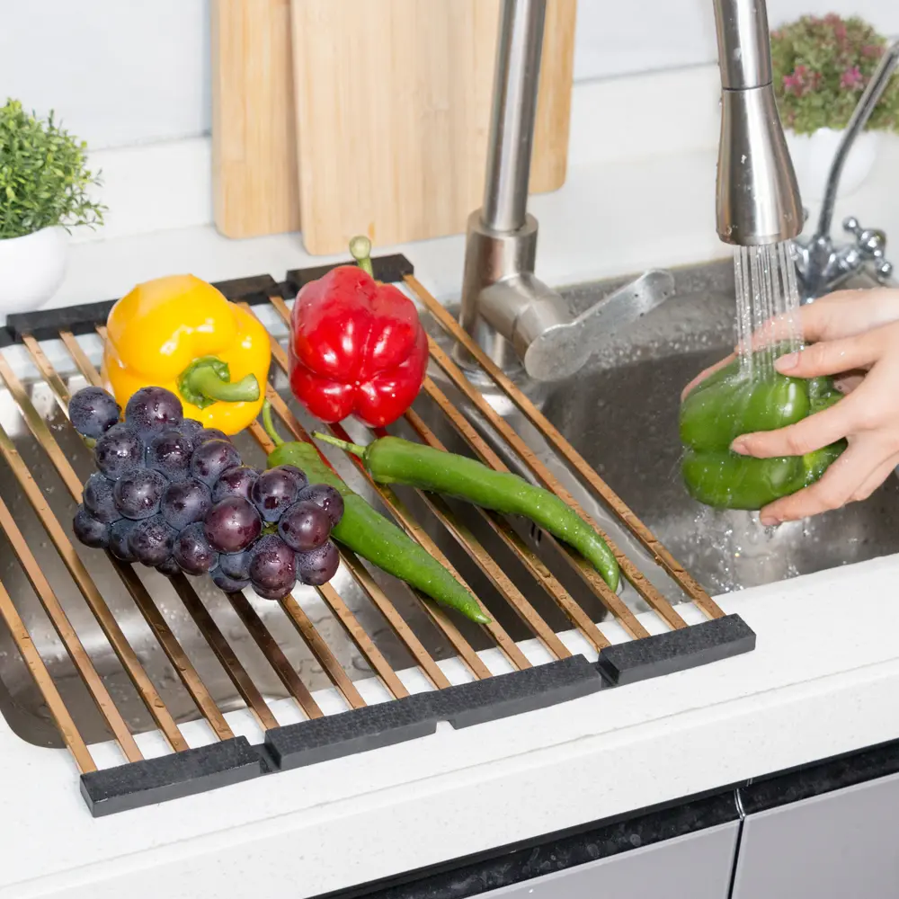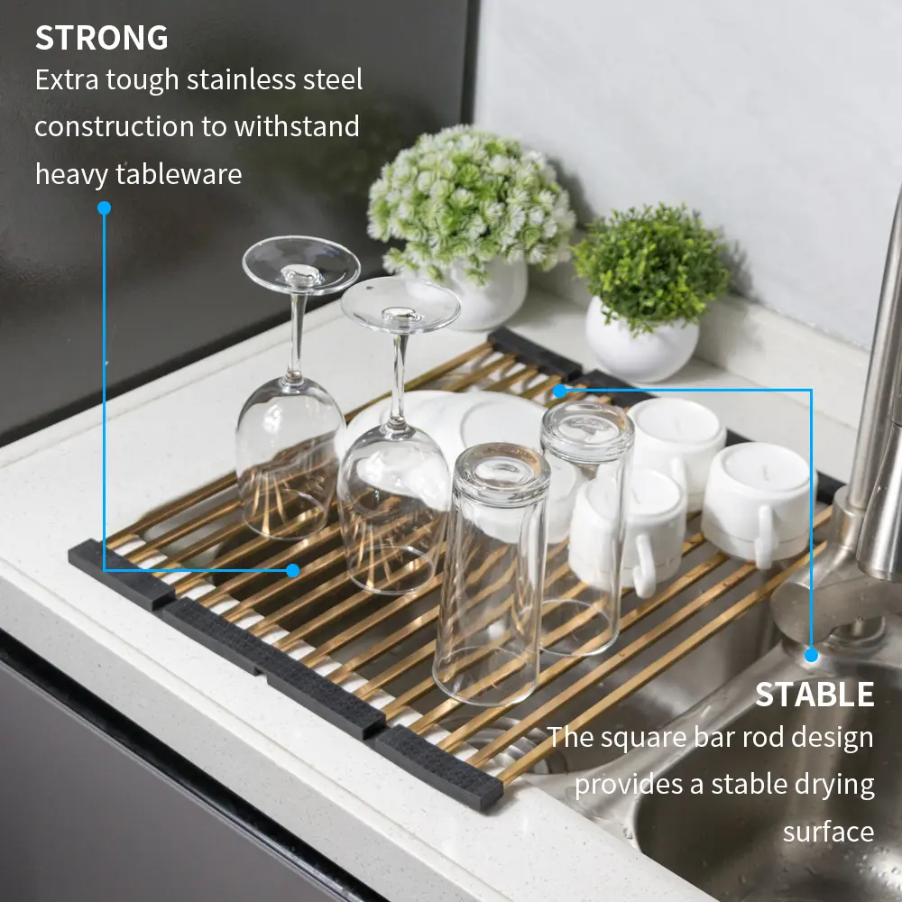 Сушка виготовлена з високоякісної нержавіючої сталі з силіконовими бортиками, яка допоможе вам легко і просто сушити посуд, фрукти, овочі і так само створить безпечну поверхню для зливу після миття.