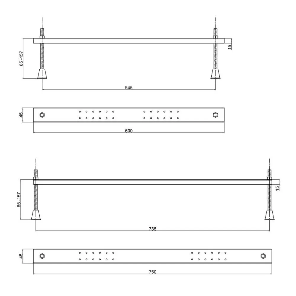 Ніжки для ванни Lidz Nozki A виготовлені з якісної сталі і призначені для надійного встановлення ванни. Підходять для асиметричної ванни. Опорна конструкція складається з двох металевих балок і чотирьох регульованих ніжок.