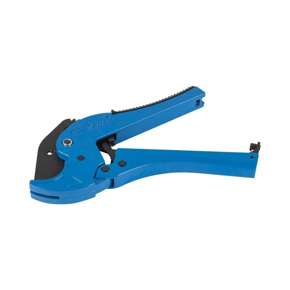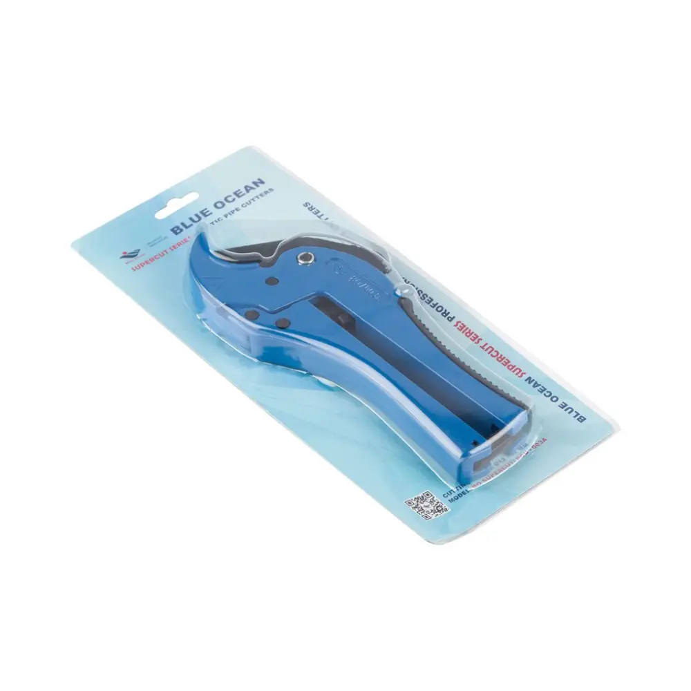 Ножницы для обрезки металлопластиковых труб Blue Ocean 16-40 выполнены из нержавеющей стали в синем цвете с фиксатором, благодаря которому инструмент можно безопасно хранить и переносить. Данные ножницы подходят для работы с пластиковыми или металлопластиковыми водопроводными трубами и трубами для установки теплого пола диаметром до 40 мм. Они имеют небольшой вес, поэтому во время работы кисть не устанет, острое лезвие из закаленной стали и зубчатый механизм обеспечат ровный срез.