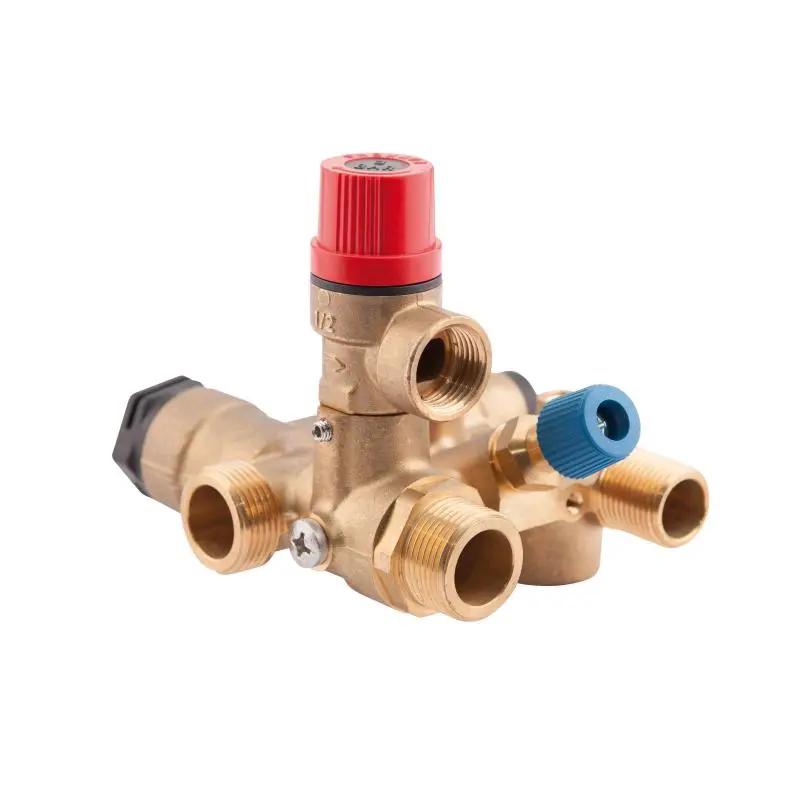 • Групи безпеки – включають в себе запобіжний клапан, повітровідвідник та манометр, що забезпечують стабільність тиску та захист системи від аварій.