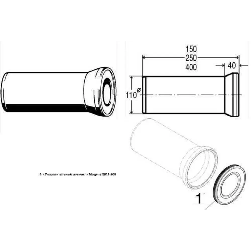 Патрубок Viega застосовується для зєднання унітазу, компакта з каналізаційною трубою, діаметром 110 мм. Комплектується спеціальним манжетом для ущільнення зєднання.