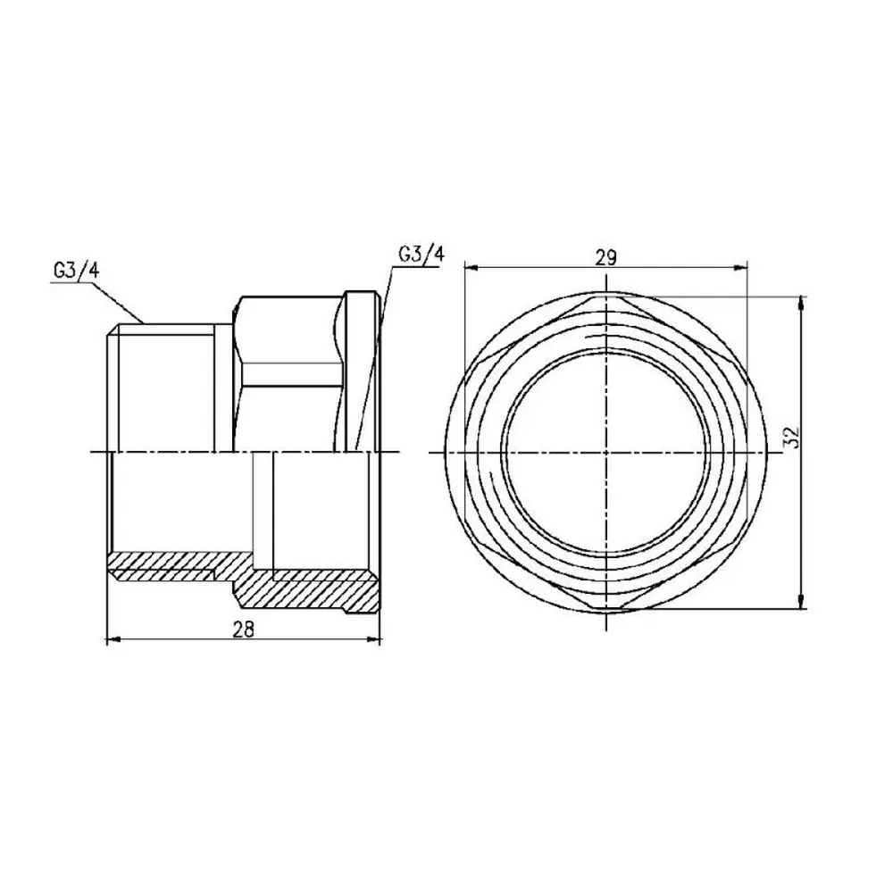 Перехід нікельований SD Forte з підключенням 3/4"х3/4" ВЗ здійснює перехід з одного діаметра трубопроводу на інший і має при цьому різне різьблення.