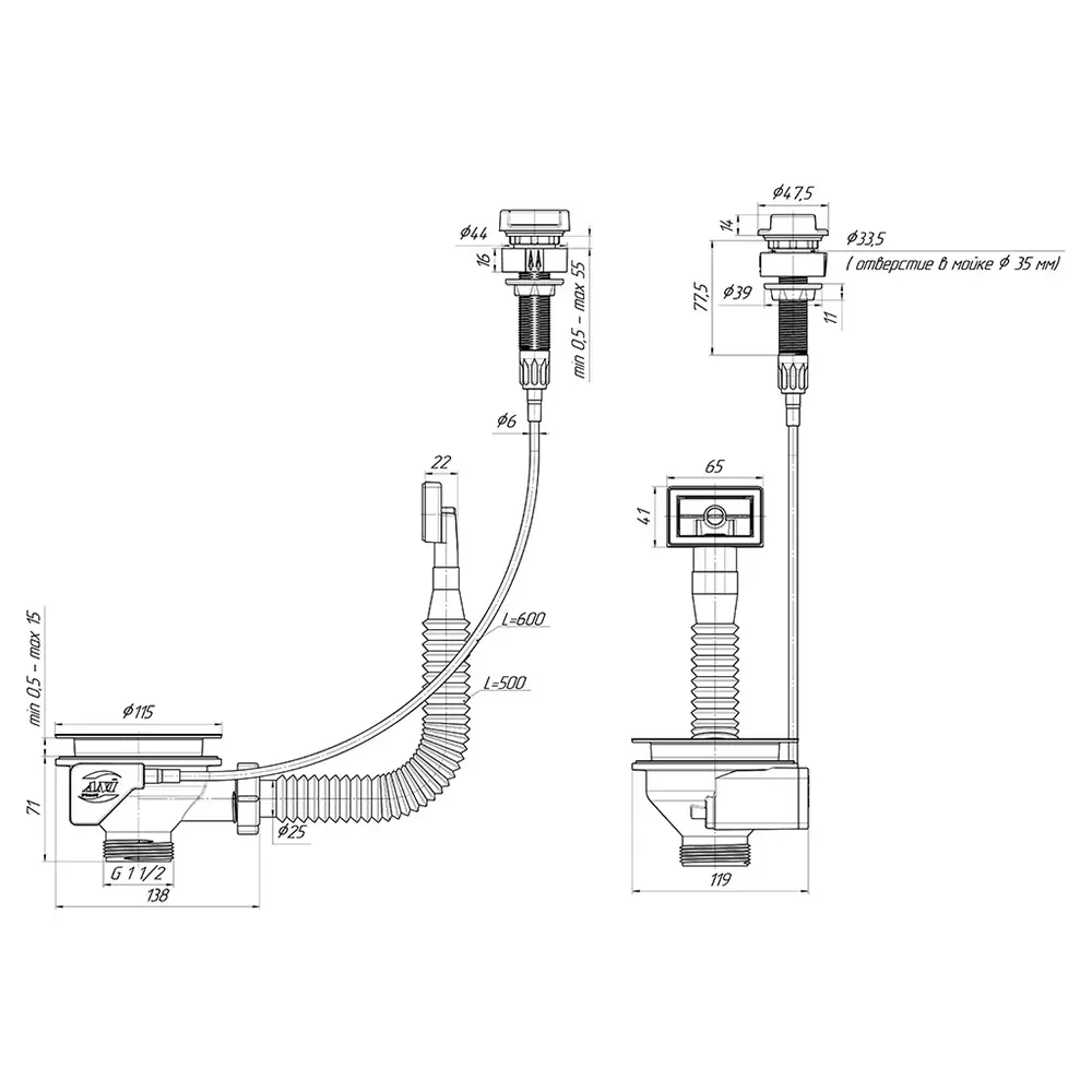 Випуск, Перелив, Ущільнювачі, Гнучка труба, Нержавіюча сітка