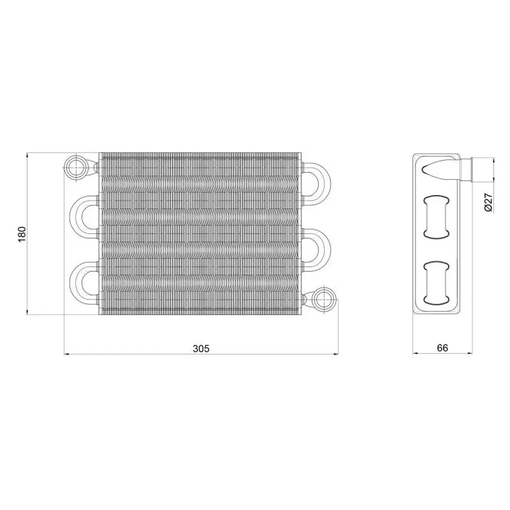 Первинний теплообмінник Thermo Alliance 6174275 (монометричний) для газових котлів. Виготовляється з міді, має антикорозійне покриття, яке є захисним жаростійким механізмом від зносу і пошкоджень. Фарбування виконане алюмінієвою термостійкою фарбою. Упакований в щільний картон, що гарантує безпечне транспортування виробу.