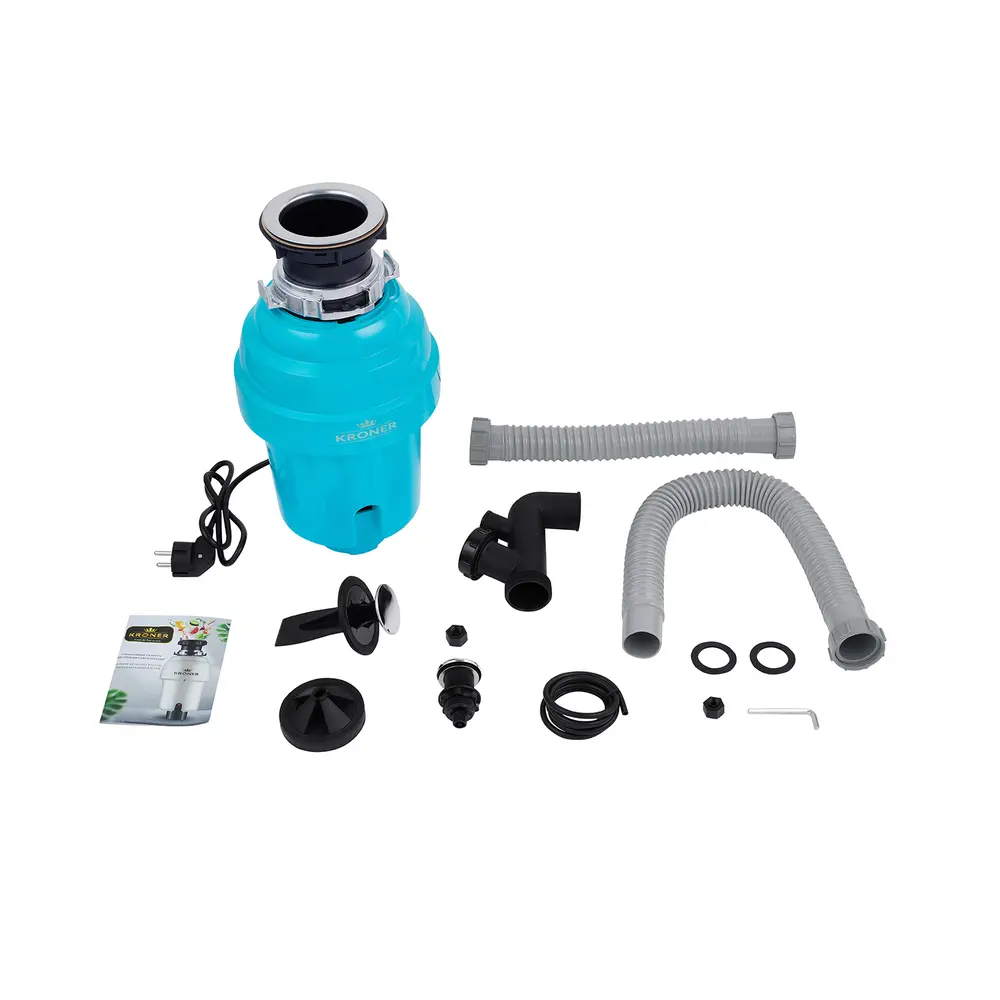 Измельчитель отходов Kroner KRP Kaiman WHI-375W – высококачественный бытовой прибор, который устанавливается в слив кухонной мойки и соединяется со входом в канализацию. Благодаря оборудованию все пищевые отходы эффективно перерабатываются в мелкие частицы и смываются вместе с водой, предотвращая засорение труб и возникновение неприятного запаха. Использование измельчителя экономит массу времени, которое обычно тратится на выбрасывание отходов в мусорное ведро. Изделие из нержавеющей стали и высококачественного пластика оснащено автоматической системой защиты от перегрузок.