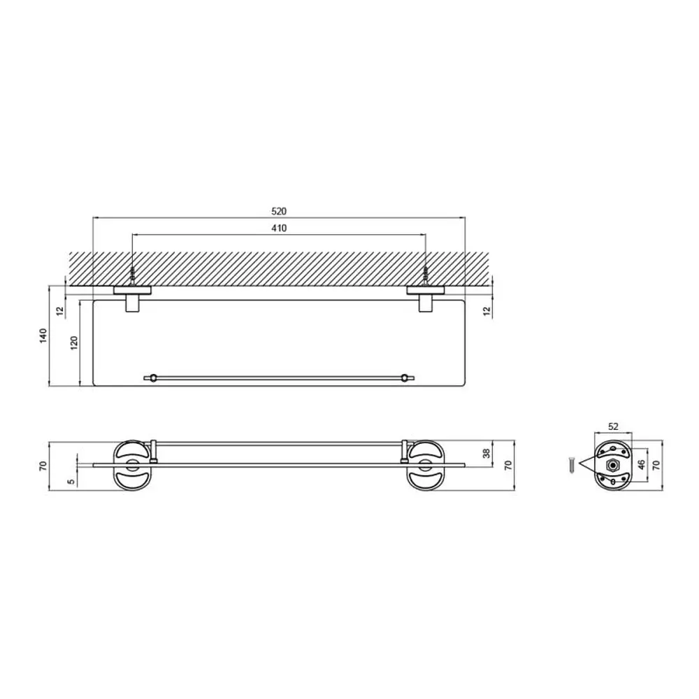 Полиця Lidz (CRG) 114.09.01 виконана з скла з пластинами кріплення з високоякісного металу з хромованим покриттям. Довжина полиці - 520 мм. Вона зробить дизайн будь-якої ванної кімнати більш привабливим. Полицю можна розташувати під дзеркалом і зберігати на ній ванні засоби гігієни, а бортик захистить їх від випадкових падінь.