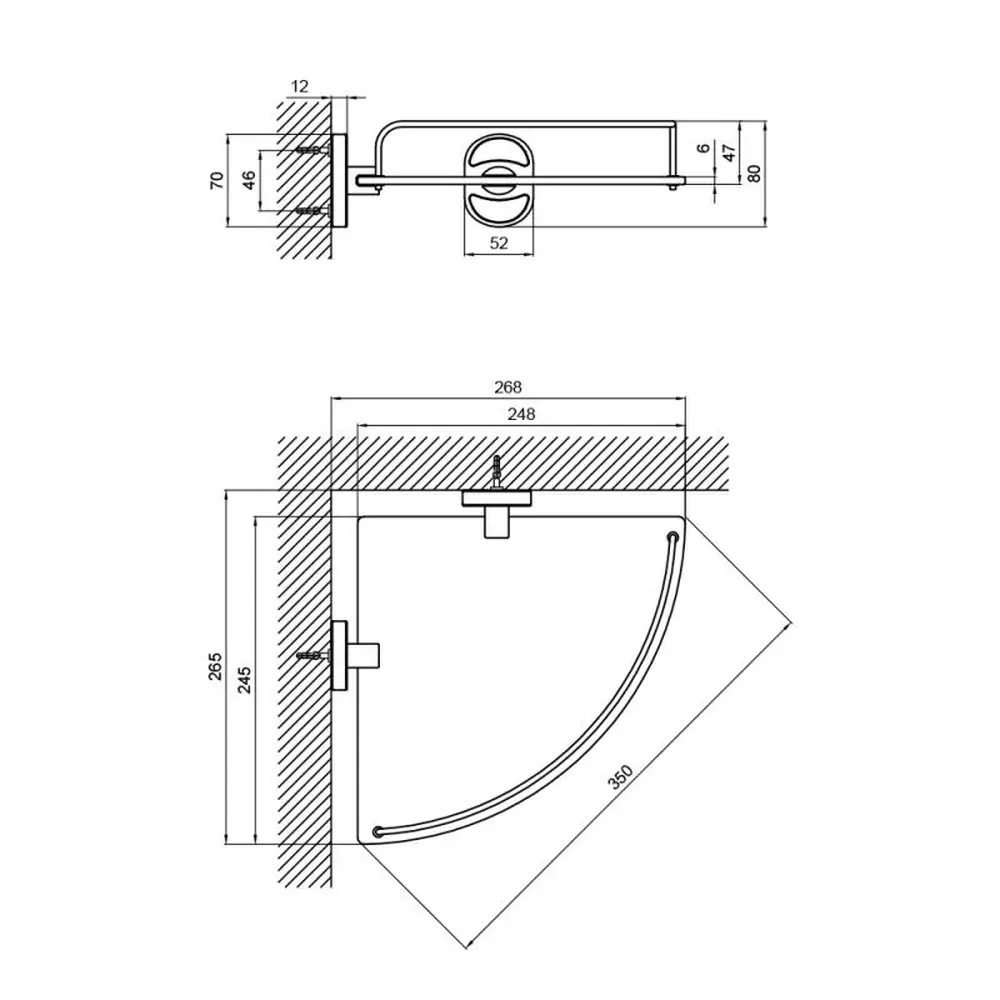 Полиця, тримач - 2 шт., борт полиці, кріпильні деталі (дюбель-цвях - 4 шт.).