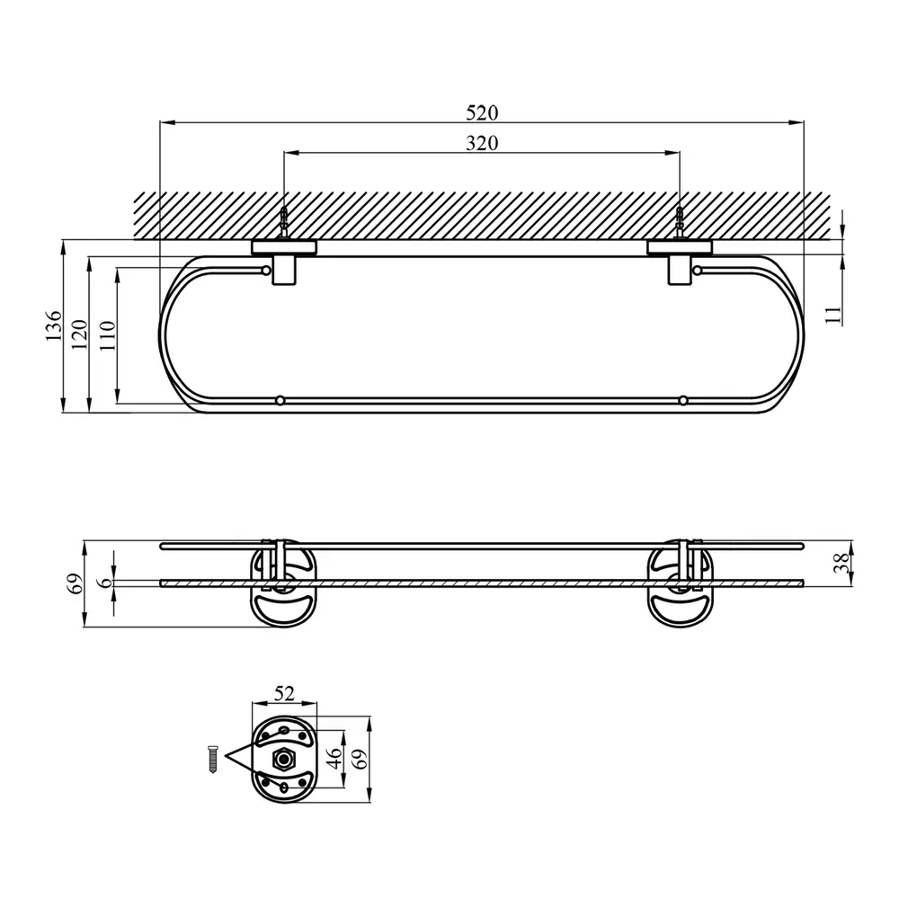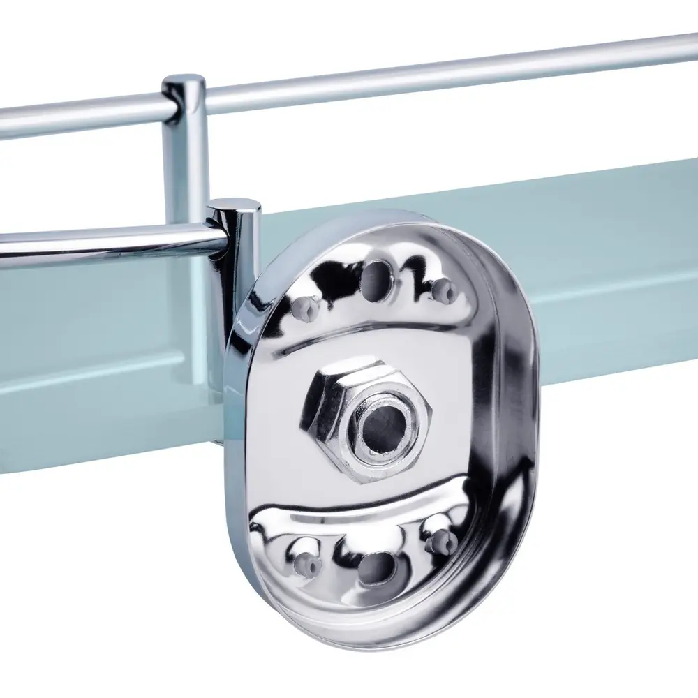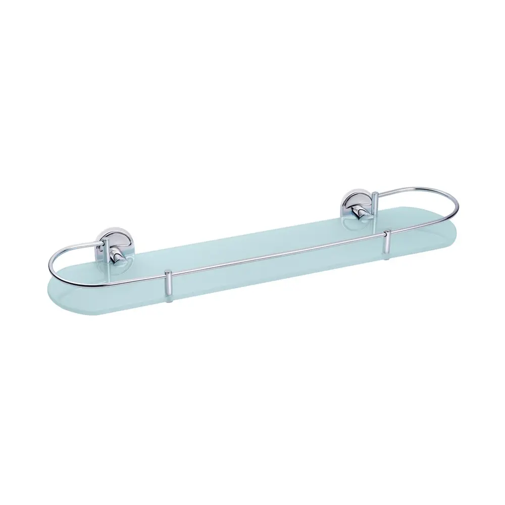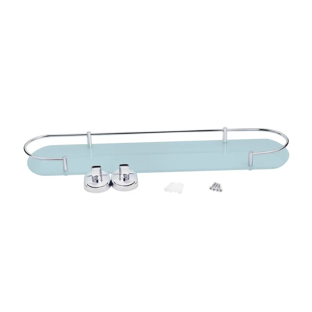 Полиця Kroner KRM Elbe-ACG2907-1 вироблена з прозорого скла з округлими краями, кріплення виготовлені з міцного металу з хромованим покриттям. Довжина полиці — 520 мм. Поличку можна розмістити під дзеркалом і зберігати на ній ванні засоби гігієни, а бортик захистить їх від випадкових падінь.