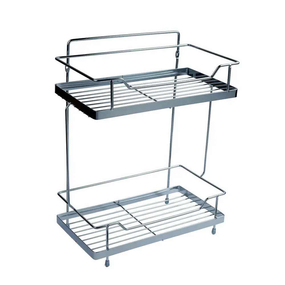 Полиця Kroner KRM Rizze-ACC330-2 виготовлена з міцного металу та складається з двох ярусів. Обладнана бортиками та фіксувальними тримачами. Поличку можна розміщувати в душовій кабіні та над ванною, щоб усі ванні предмети були під рукою. Хромоване покриття запобігає появі корозії.