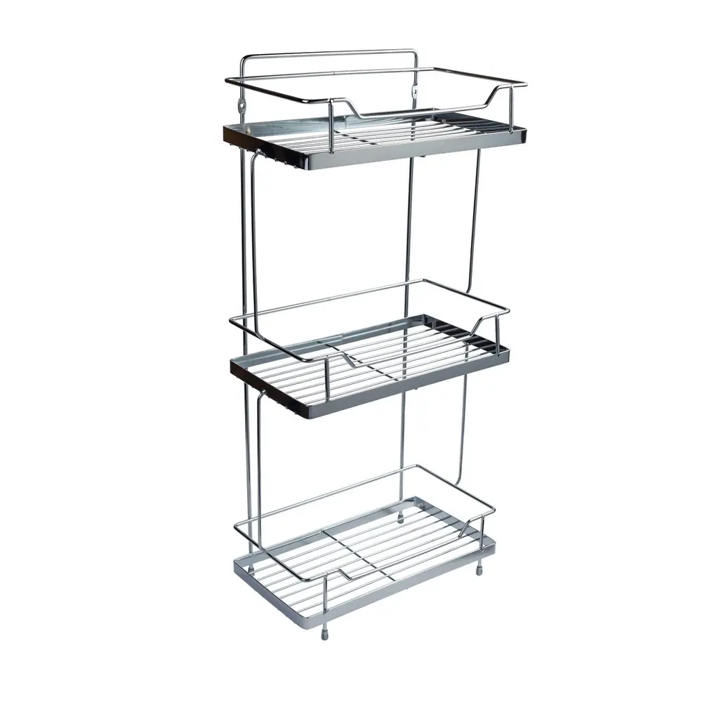 Полиця Kroner KRM Rizze-ACC330-3 виготовлена з міцного металу та складається з трьох ярусів. Обладнана бортиками та фіксувальними тримачами. Поличку можна розміщувати в душовій кабіні та над ванною, щоб усі ванні предмети були під рукою. Хромоване покриття запобігає появі корозії.