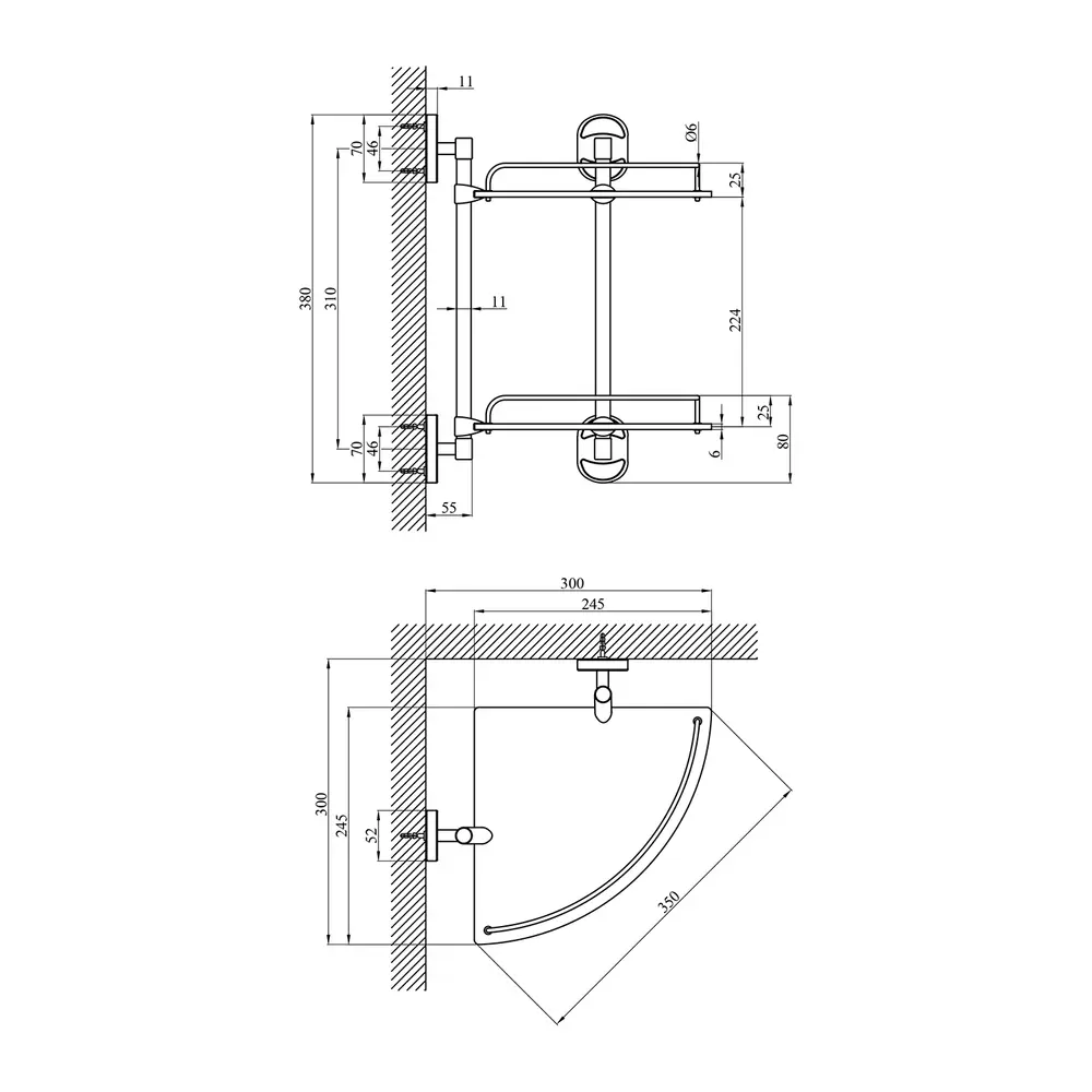 Полички - 2 шт.,тримачі - 4 шт., борти полиць - 2 шт., кріплення.