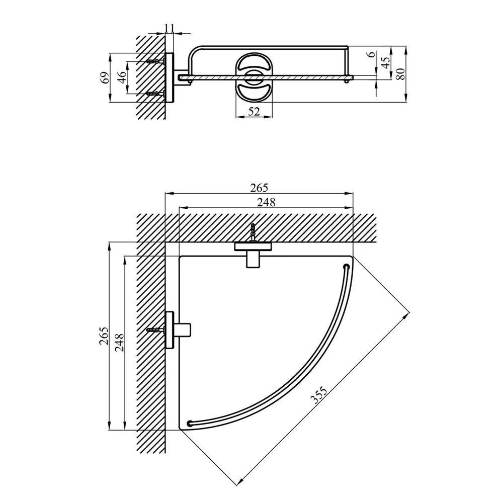 Поличка, тримач - 2 шт., борт полиці, кріплення.