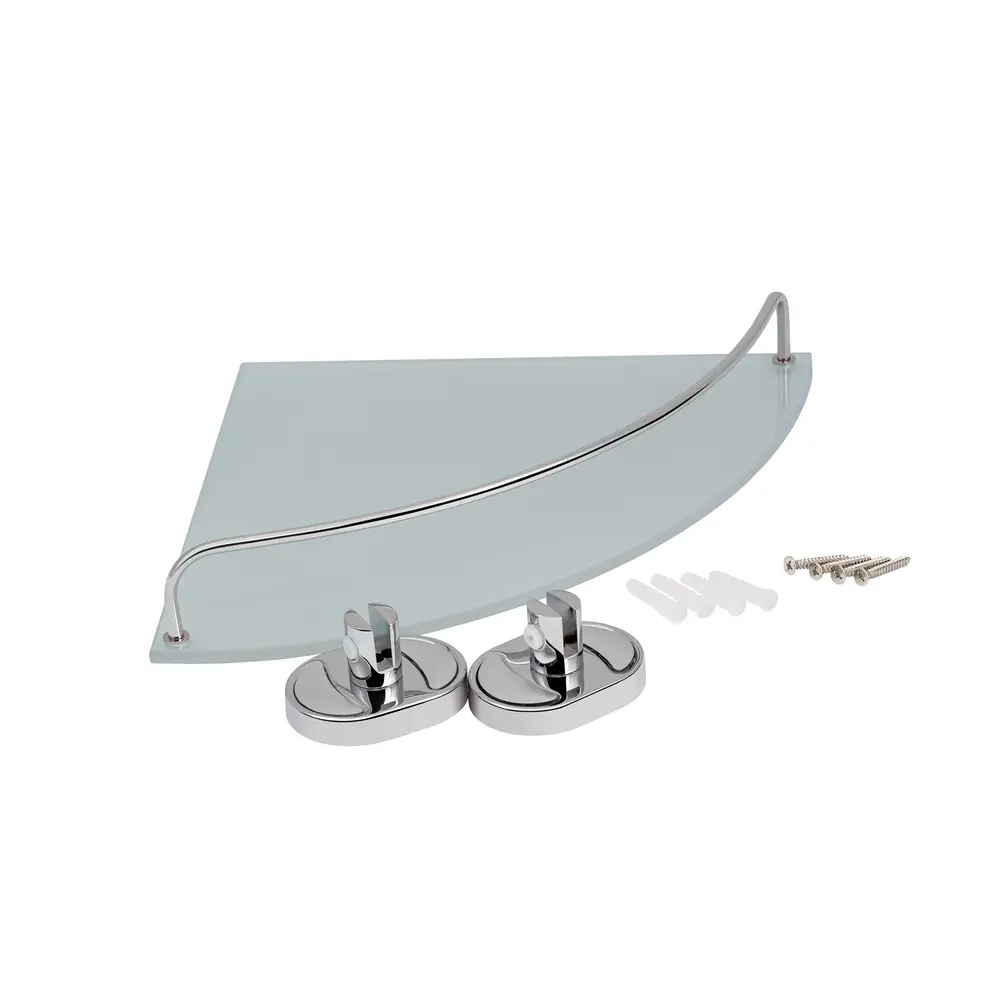 Кутова полиця Kroner KRM Elbe-ACG2921-1 вироблена з прозорого матового скла з пластинами кріплення й бортиком із високоякісного металу з хромованим глянсовим покриттям. Полицю можна розташувати в душовій або над ванною для того, щоб усе ванні засоби гігієни завжди були під рукою. Вона зробить дизайн будь-якої ванної кімнати привабливішим.