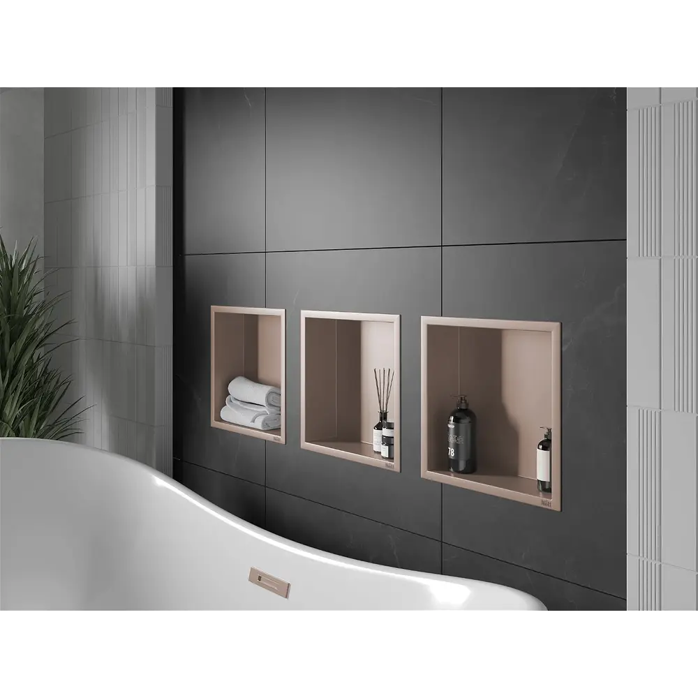 Завдяки використанню нержавійки марки SUS 304, настінній ніши мають високу стійкість до потемніння та корозії, що гарантує збереження її привабливого зовнішнього вигляду та функціональності протягом тривалого часу, незалежно від рівня вологості у приміщенні.