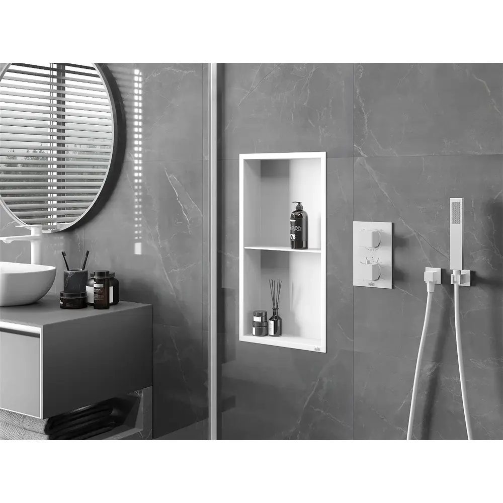 Завдяки використанню нержавійки марки SUS 304, настінній ніши мають високу стійкість до потемніння та корозії, що гарантує збереження її привабливого зовнішнього вигляду та функціональності протягом тривалого часу, незалежно від рівня вологості у приміщенні.