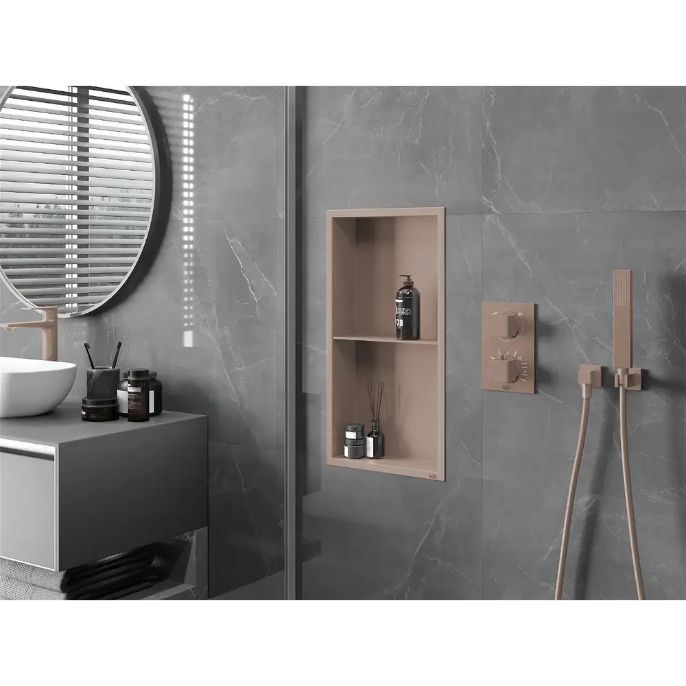 Завдяки використанню нержавійки марки SUS 304, настінній ніши мають високу стійкість до потемніння та корозії, що гарантує збереження її привабливого зовнішнього вигляду та функціональності протягом тривалого часу, незалежно від рівня вологості у приміщенні.