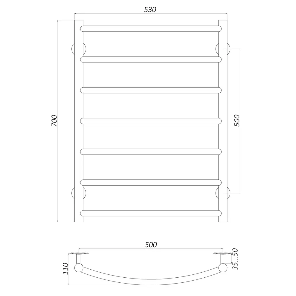 Полотенцесушитель изготовлен из нержавеющей стали.