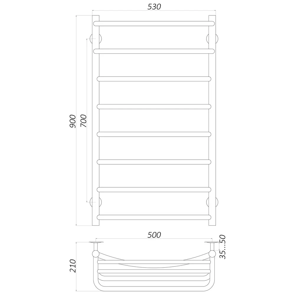 Полотенцесушитель изготовлен из нержавеющей стали.