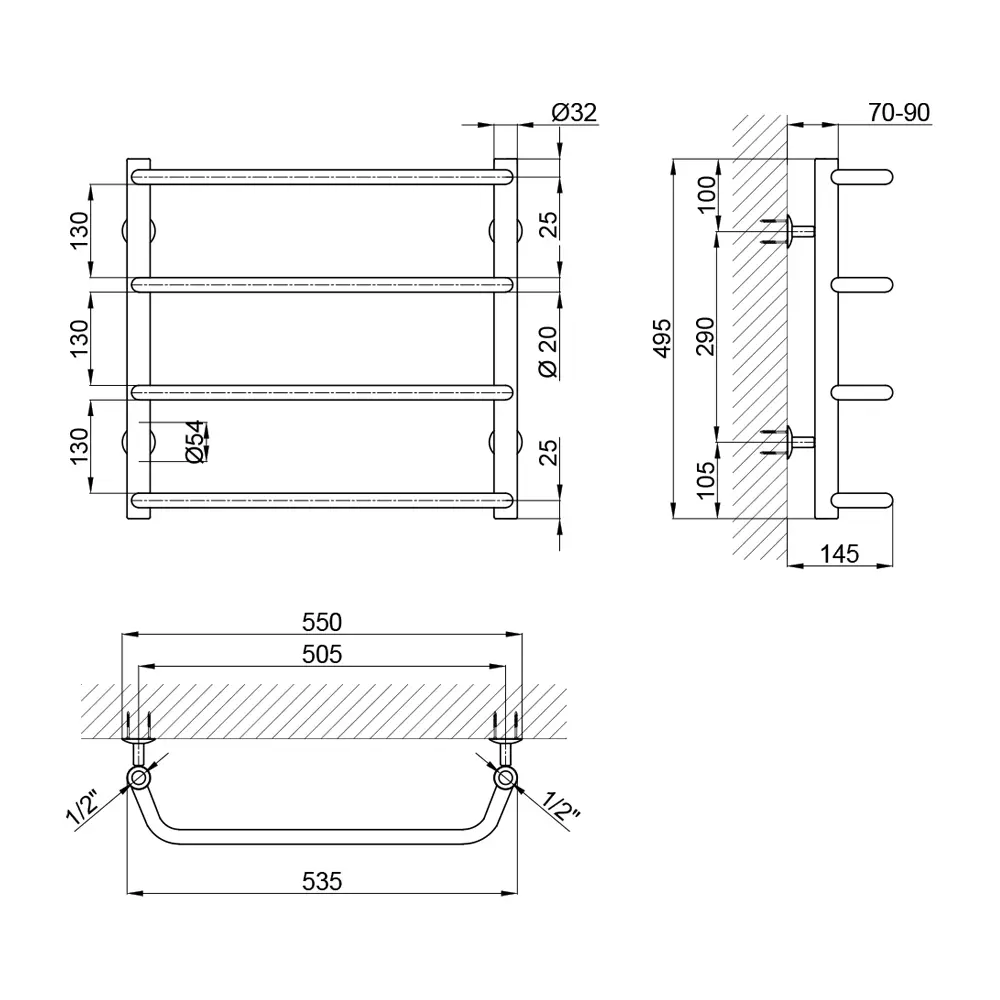 Водяной полотенцесушитель Lidz Standard (CRM) D32 / 20х1 / 2 "500x500 P4 имеет классическую хромированную поверхность, гармонично дополнит любой интерьер вашей ванной комнаты. Сушилка выполнена из нержавеющей стали марки AISI 304 с толщиной 1,5 мм, поэтому изделие не поддается коррозии и прослужит долгие годы. Благодаря ей в ванне не образуется грибок и неприятный запах, сохраняется, а уровень влажности не превышает оптимальный.