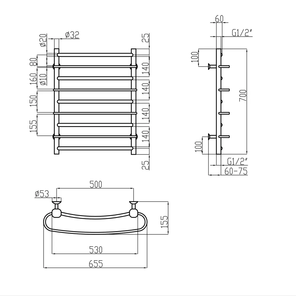 Водяной полотенцесушитель Lidz Standard (CRM) РЛС D32 / 20х1 / 2 "500x700 P5 имеет классическую хромированную поверхность, гармонично дополнит любой интерьер вашей ванной комнаты. Сушилка выполнена из нержавеющей стали марки AISI 304 с толщиной 1,5 мм , поэтому изделие не поддается коррозии и прослужит долгие годы. Благодаря ей в ванне не образуется грибок и неприятный запах, сохраняется, а уровень влажности не превышает оптимальный.