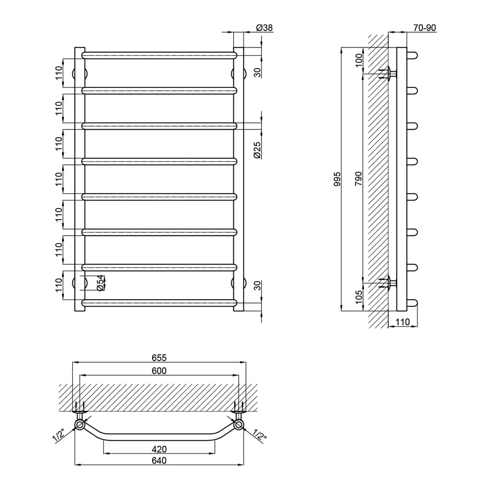 Водяной полотенцесушитель Lidz Trapezium (CRM) D38 / 25 600x1000 P8 гармонично дополнит любой интерьер вашей ванной комнаты. Водяной полотенцесушитель выполнена из нержавеющей стали марки AISI 304. Благодаря ей в ванне не образуется грибок и неприятный запах, сохраняется, а уровень влажности не превышает оптимальный. Кроме того, на ней удобно сушить полотенца и белье.