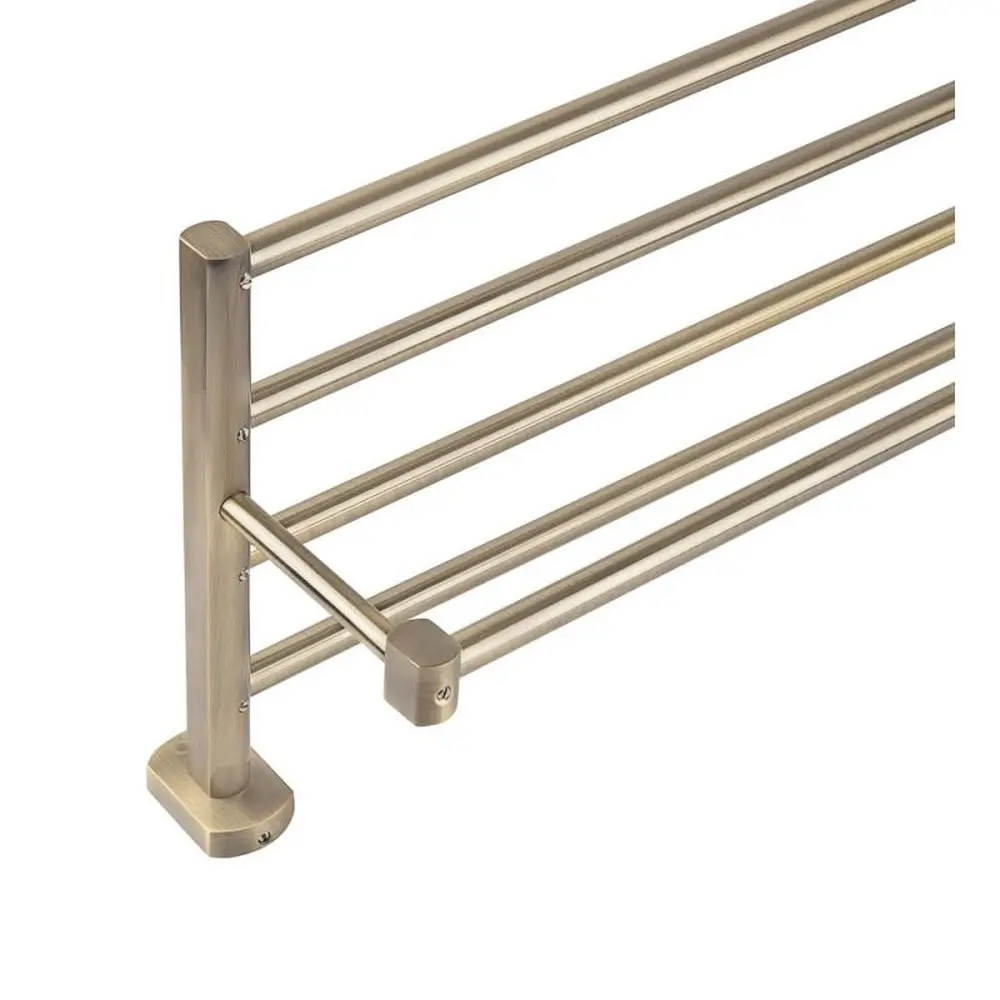 Тримач рушників Qtap Liberty ANT 1122 у вигляді решітки доповнить ванну кімнату з будь-яким інтер‘єром і зробить її зручніше. Виконаний з латуні з бронзовою глянсовою поверхнею, яка легко миється і не піддається корозії. Тримач складається з кріплення і чотирьох стрижнів довжиною 585 мм кожен, які дозволяють розмістити чотири рушники в складеному або повішеному стані, а також банні засоби гігієни. Крім того, виріб обладнано додатковим нижнім стрижнем для сушіння вологих рушників.