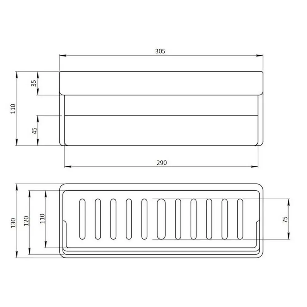 Полиця Qtap PL02 - пряма, швидкознімна, завдяки чому догляд за нею буде простим і легким. В полиці передбачені отвори для стікання води, тому всі предмети залишаться сухими. Кріпиться на стіні на необхідну висоту за допомогою липкого трафарету з розміткою та шурупів, які входять до комплекту. На панель нанесений фірмовий логотип виробника.